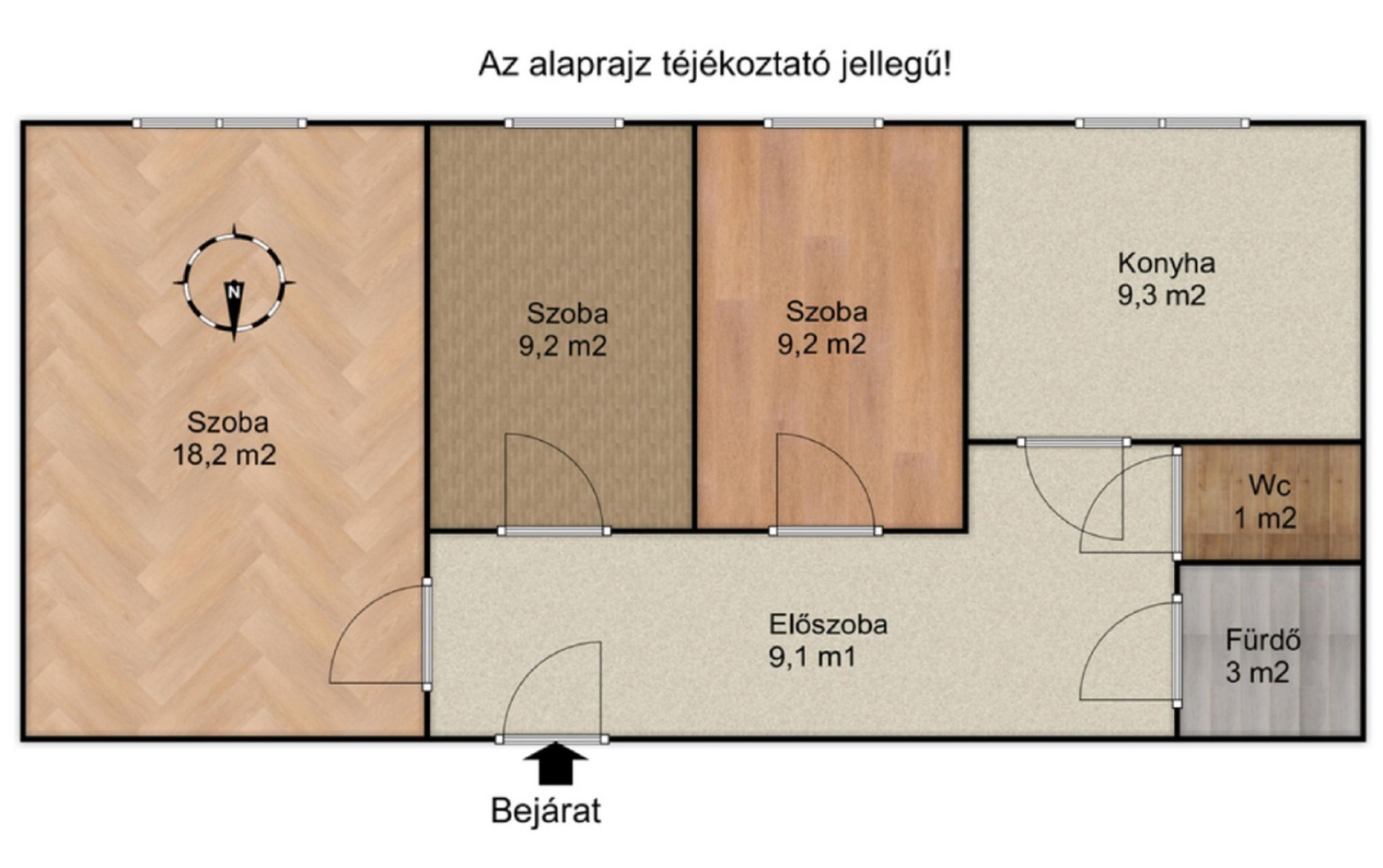 Nappali szalagparkettával borított.