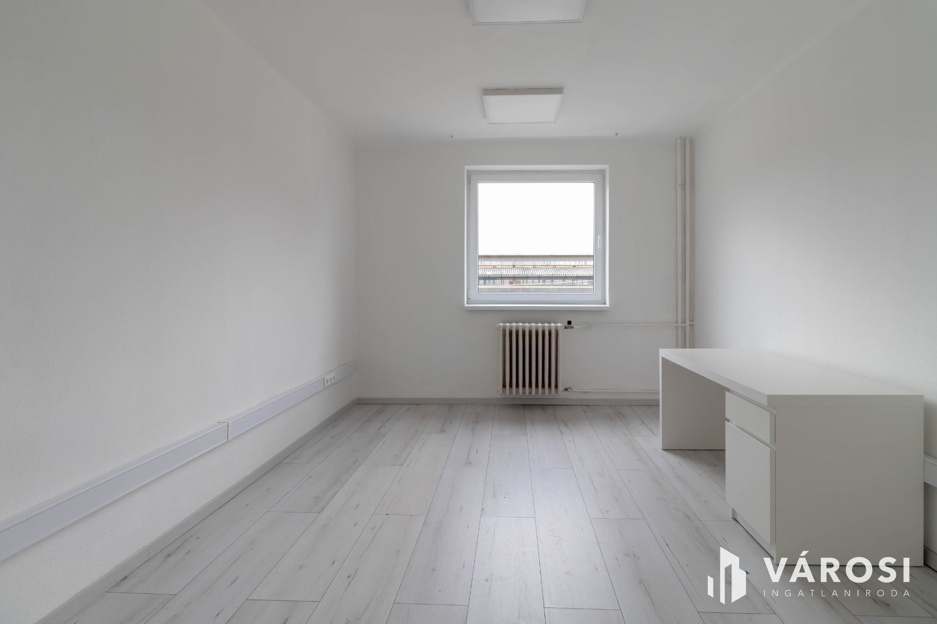 Az iroda egyébként bútorozatlan.