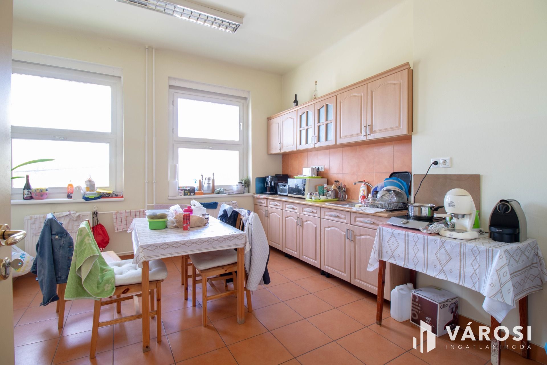 Az irodaház alapterülete szintenként (fszt.+I.em.+II.em.) 512 m2, az alagsori szint további kb. 50 m2-es. A szintek – az alaprajzon is látható módon – középfolyosós rendszerűek, 16-50 m2-es helyiségekkel, szintenként tágas fogadótérrel, valamint mosdóblokkokkal és konyhákkal-étkezőkkel. Jelenleg a teljes földszint és alagsor raktározási célt szolgál, az emeleti szintek irodáiban bérlők vannak. A belmagasság 3 m.
