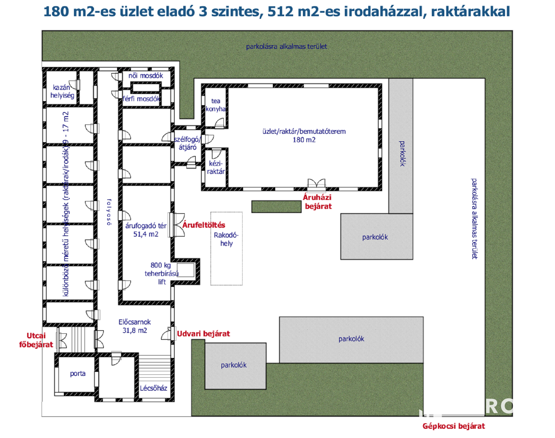 180 M2-ES ÜZLET HÁROM SZINTES, SZINTENKÉNT 512 M2-ES IRODAHÁZZAL, RAKTÁRAKKAL, PARKOLÓKKAL – STRATÉGIAI HELYEN ELADÓ