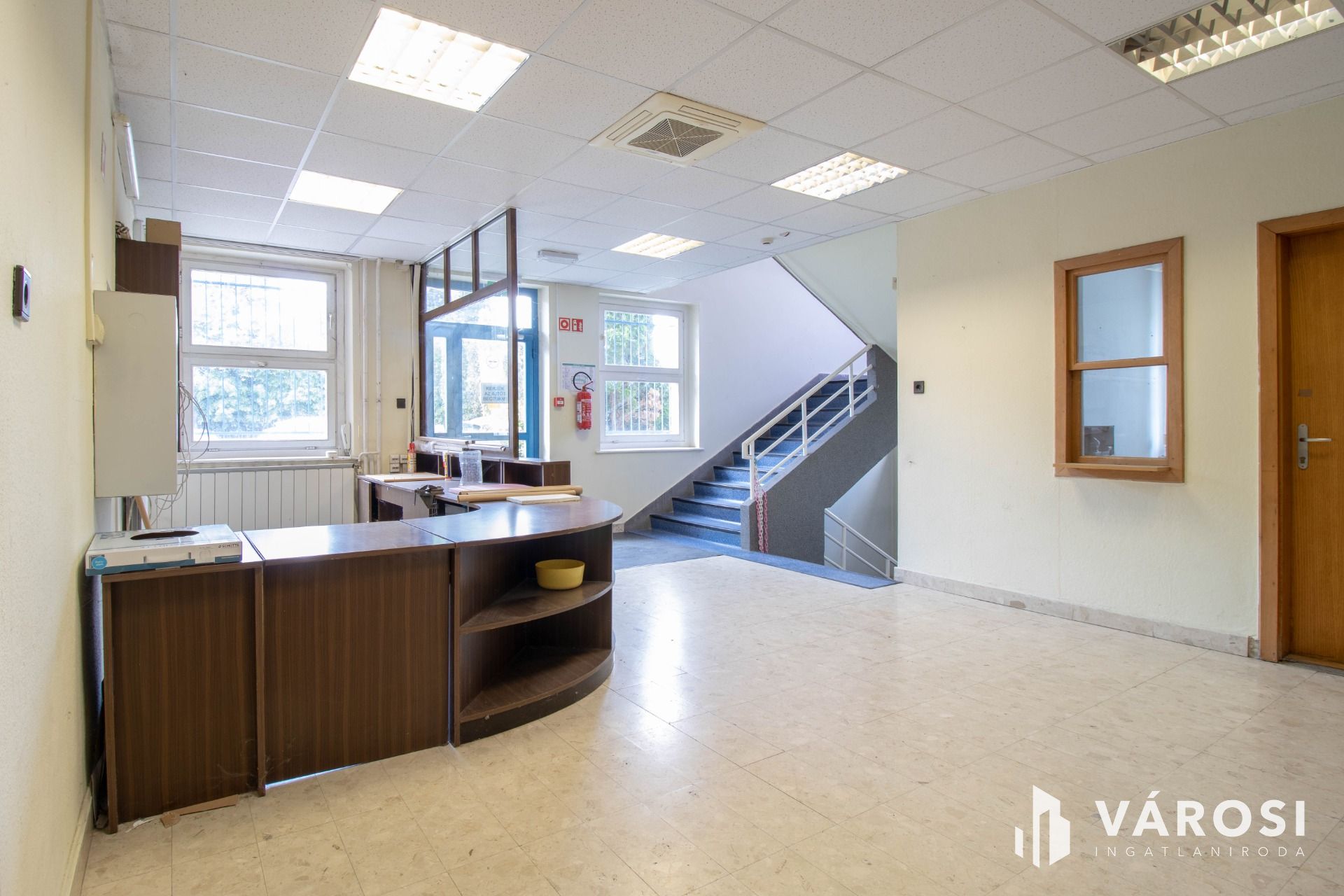 Az 1760 m2-es, körbekerített saroktelken két épület található: egy tégla építésű, 3 szintes, két emeletes irodaház, valamint egy 2014-ben ytong falazó elemekből épült 180 m2-es földszintes raktár/áruház/bemutatóterem.