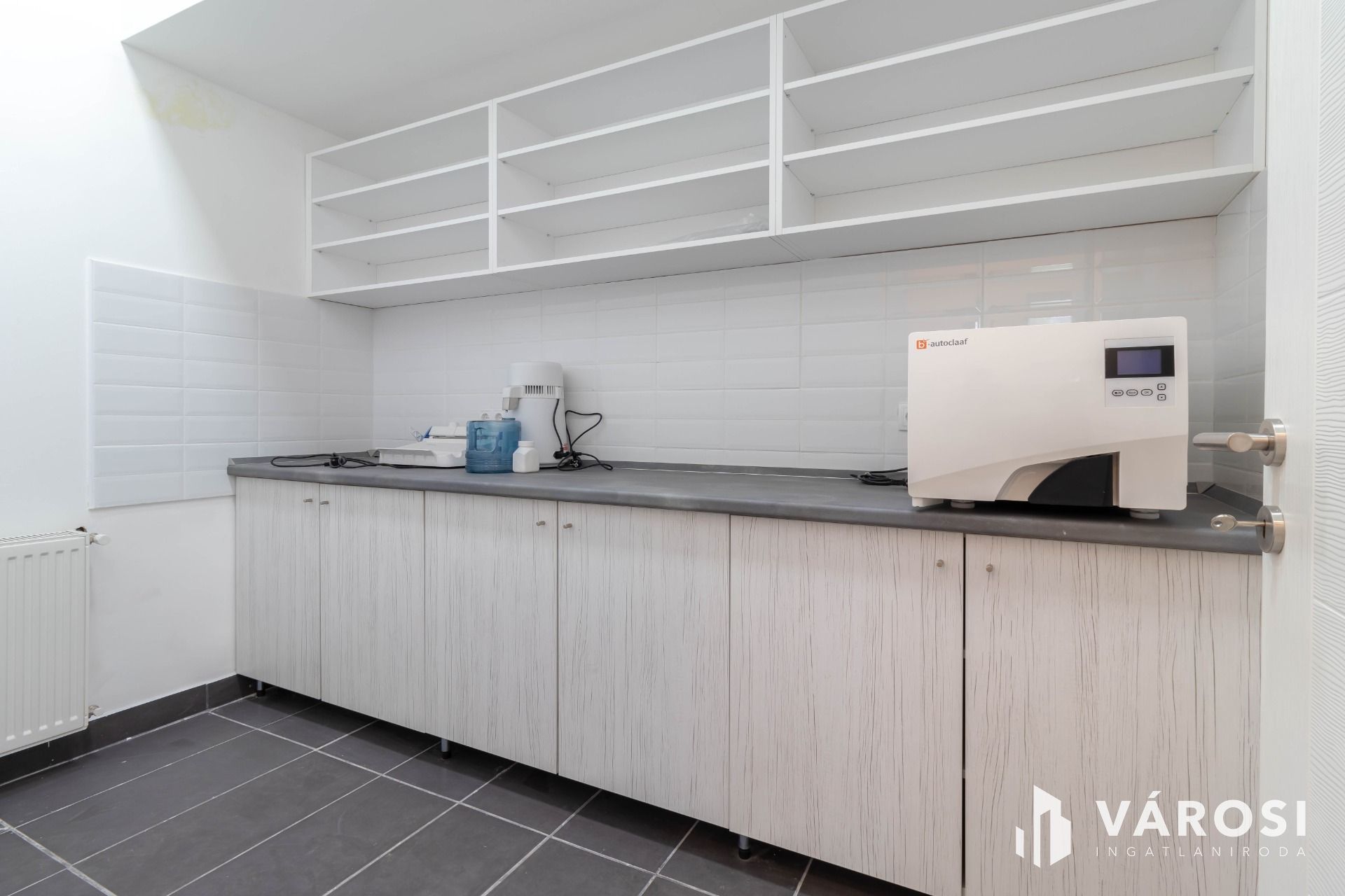 Rendelkezésre áll a további 5 rendelővel közös használatú sterilizáló helyiség, röntgen helyiség, valamint személyzeti öltöző és teakonyha.