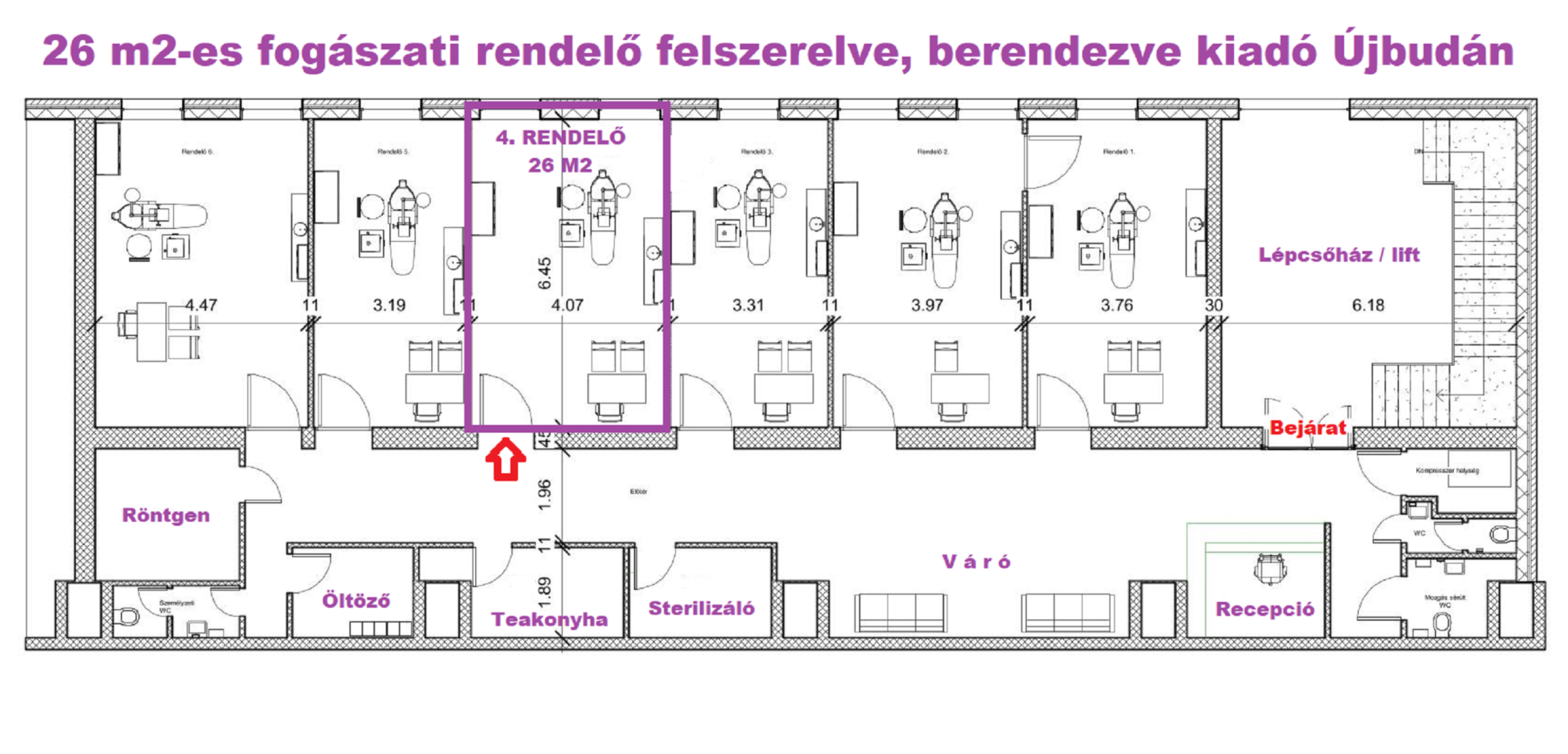 26 M2-ES FOGÁSZATI RENDELŐ FELSZERELVE, BERENDEZVE KIADÓ ÚJBUDÁN