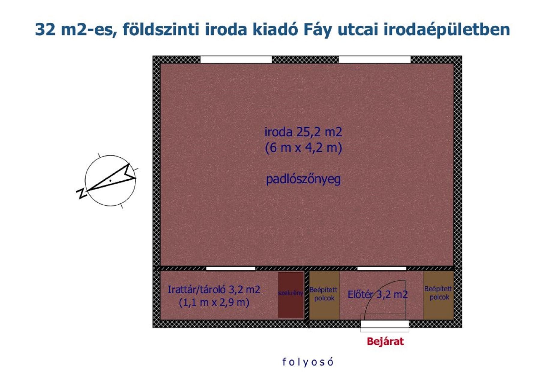32 M2-ES, FÖLDSZINTI IRODA KIADÓ FÁY UTCAI IRODAÉPÜLETBEN