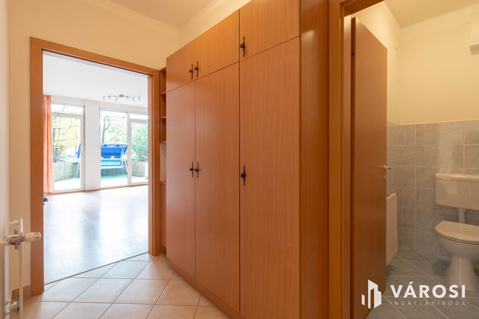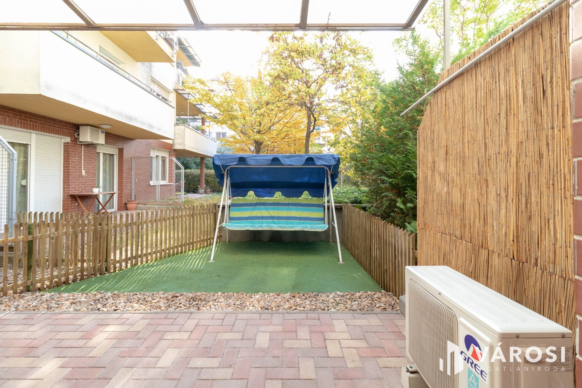 Különlegessége a munkatérből közvetlenül nyíló 9,5 m2-es, kövezett és fedett terasz, valamint az előtte lévő 10 m2-es, műfüves, saját kiskert, mely kivételesen ritka lehetőség.