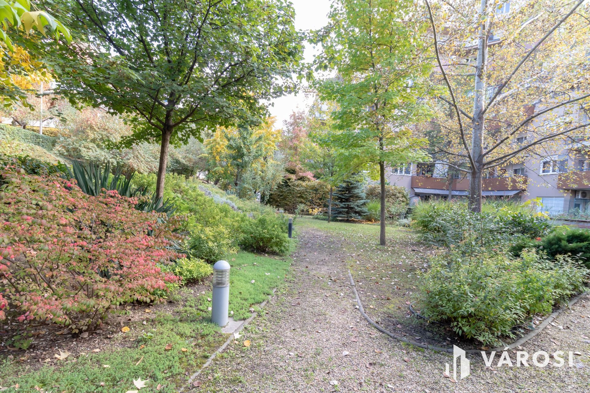 A hangulatos, több szintes, sétányokkal és pihenőkkel rendelkező parkosított belső udvar emeli a színvonalat.