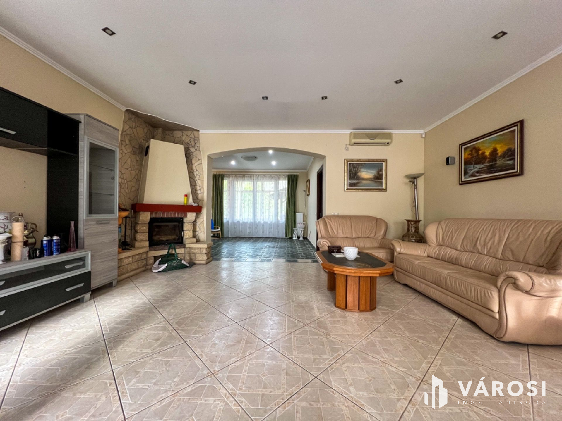 Helyiségei: 2 hálószoba, nappali, konyha+étkező, kamra, közlekedő, gardrób, mosóhelyiség, fürdőszoba, szauna, külön nyíló W.C., szélfogó, garázs, beépített terasz, nyitott terasz.