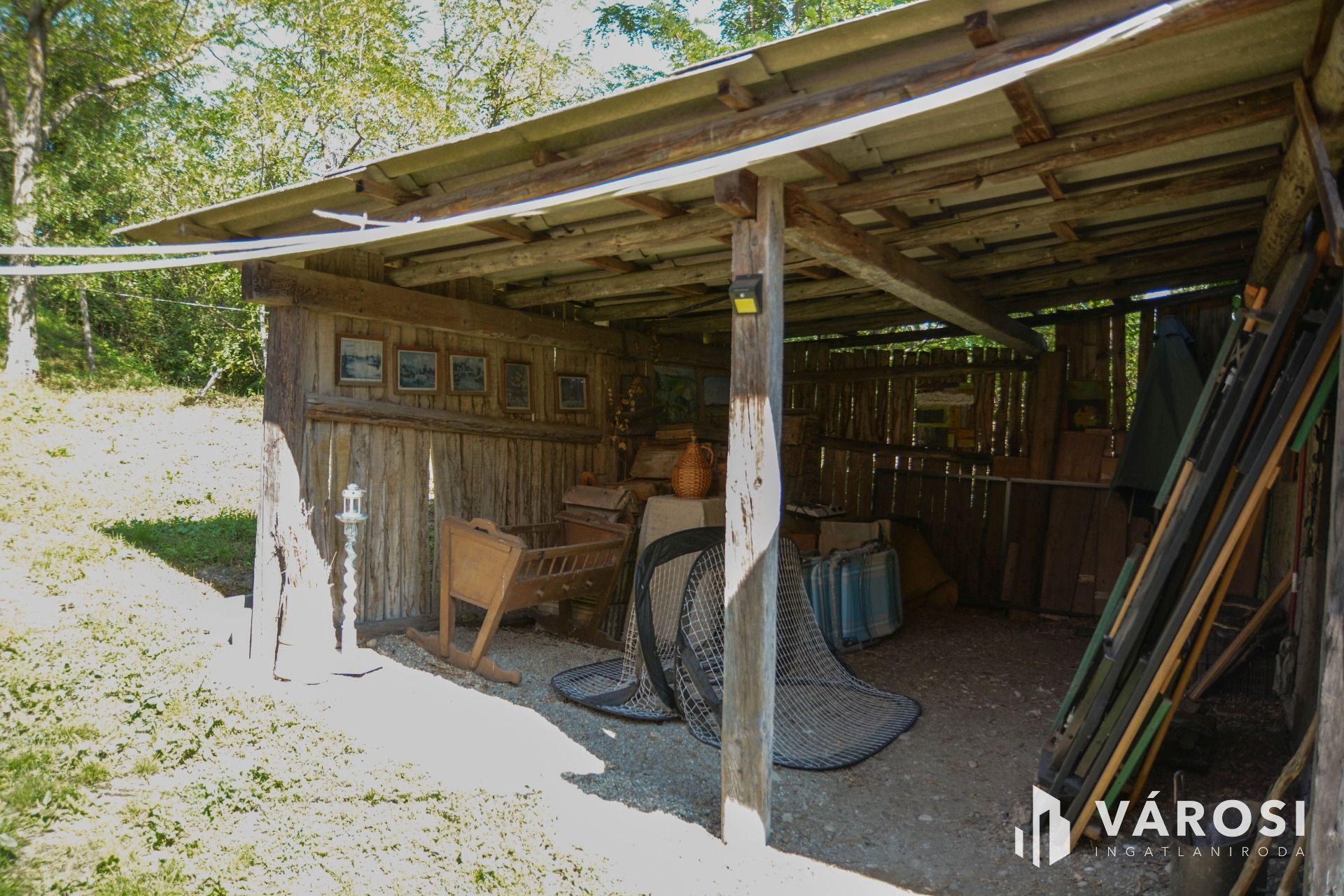 A ház végében megtalálható egy fedett tároló, valamint két belső helyiség is, ahol kényelmesen elférnek az egyéb holmik.