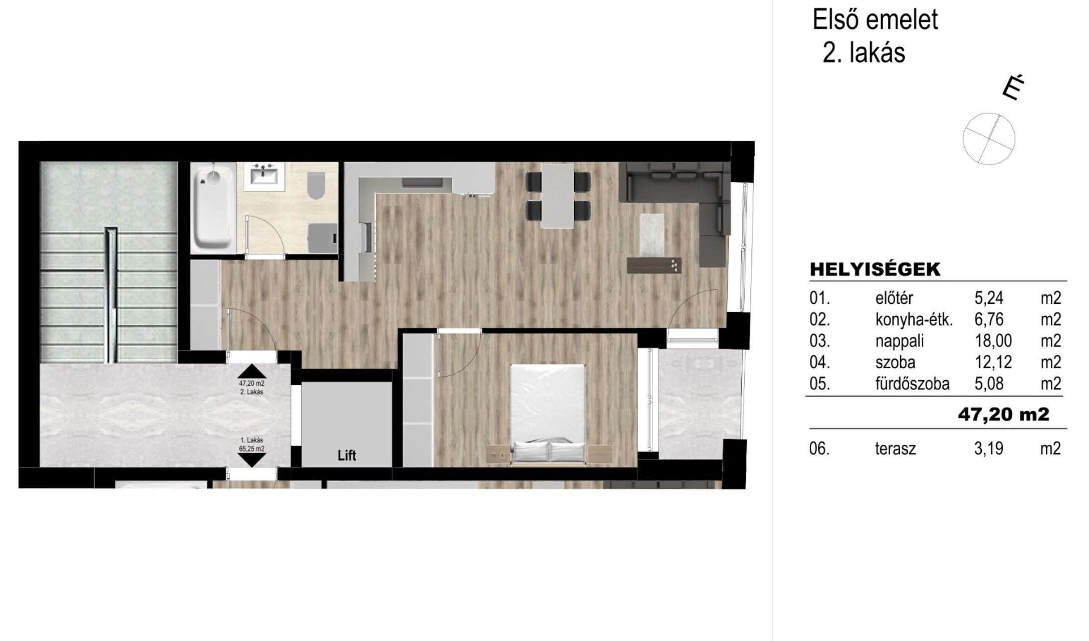 A lakásban egy tágas szoba, egy világos nappali, egy modern amerikai konyha, valamint egy stílusos fürdőszoba található. Az erkélyről csodálatos kilátás nyílik a környékre, míg a padlófűtés és a mennyezet hűtés biztosítja a lakás kellemes hőmérsékletét az év minden hónapjában. Az ingatlan külső hőszigeteléssel rendelkezik, ami további energiahatékonyságot garantál.