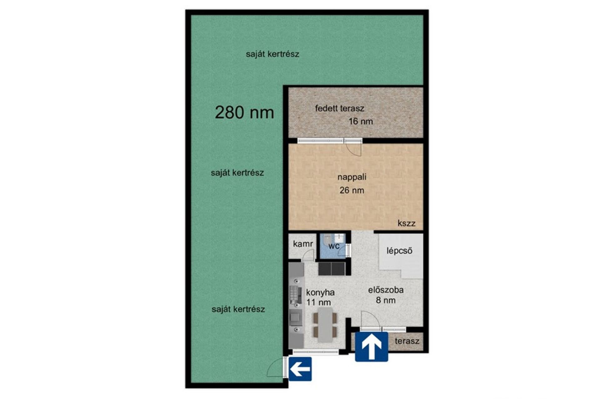 Folyamatosan karbantartott sorház, központi helyen, mégis csendes privát kertrésszel. Akár nagycsaládosoknak is tökéletes választás lehet.