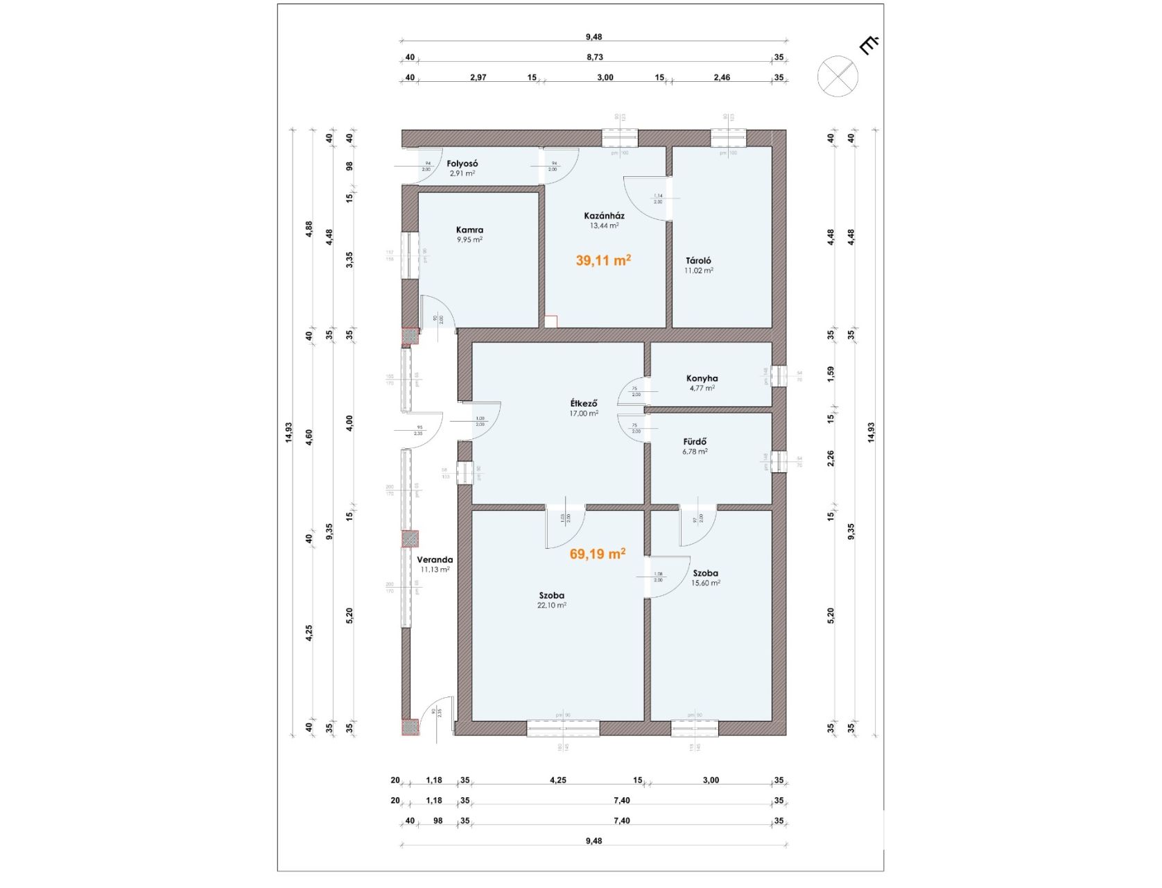 Egy 1940m2-es telken épült a ház, az 1960-as évek elején. A lakótér közel 70m2-es, az egyéb kiszolgáló helyiségek plusz ~40m2 alapterületet tesznek hozzá.