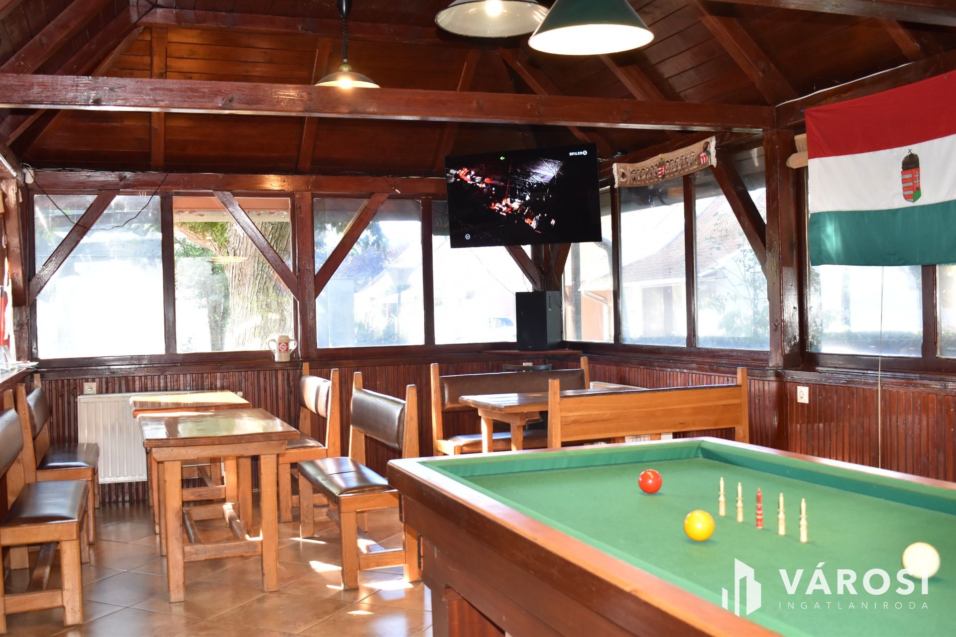 Eladásra kínálom Gyula fürdőváros üdülő övezeti részén a Várfürdő és a Hőforrás üdülő szomszédságában található 1992 évben épült és 2010 évben felújított 100 m2 alapterületű üzlethelységet. Az üzlethelység jelenleg vendéglátó egységként és Lottózóként van üzemeltetve, amelyhez egy stabil és hűséges vendégkör is tartozik. A vendéglátóhoz ki lett alakítva egy 30 m2-es téliesített teraszrész is. A felújítások során a teljes elektromos hálózat fejlesztése, a hidegburkolatok, a nyílászárók cseréje is megtörtént. Az üzletben továbbá ki lett alakítva egy mai kornak megfelelő férfi és női vizes blokk is. Az üzlet kialakítása is kiváló, mivel egy közel 75 m2-es kiszolgáló rész és 3 db vizes blokk, illetve WC lett kialakítva. Az üzlet fűtéséről egy Wiessmann gázkazán és lapradiátorok gondoskodnak. A hűtésről pedig egy újszerű 5 kw-os, inverteres klímaberendezés gondoskodik. A vendéglátó adottságainak köszönhetően kiválóan alkalmas kisebb-nagyobb rendezvények lebonyolítására is.