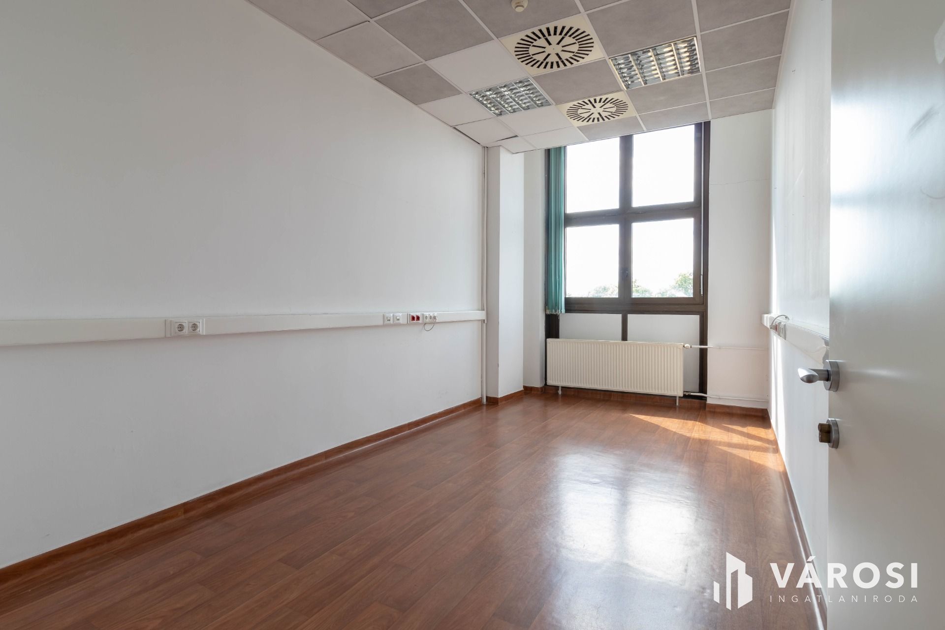 A 2. emeleten található, belső vizesblokkal rendelkező, 132 m2-es ingatlanrészben van egy 77 m2-es nagy terem, valamint két 17 m2-es iroda. A 8 m2-es előtérből nyílik mindegyik, valamint innen nyílik a 7 m2-es konyha is. A konyhából pedig az 5 m2-es mosdó, külön férfi és női wc-vel.