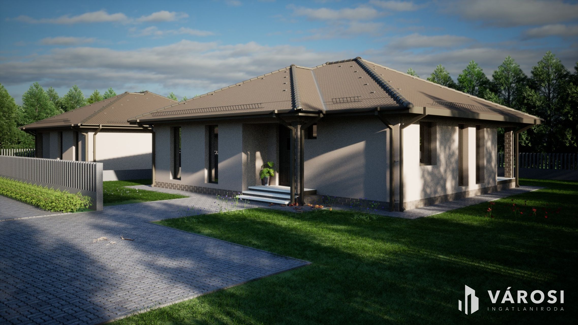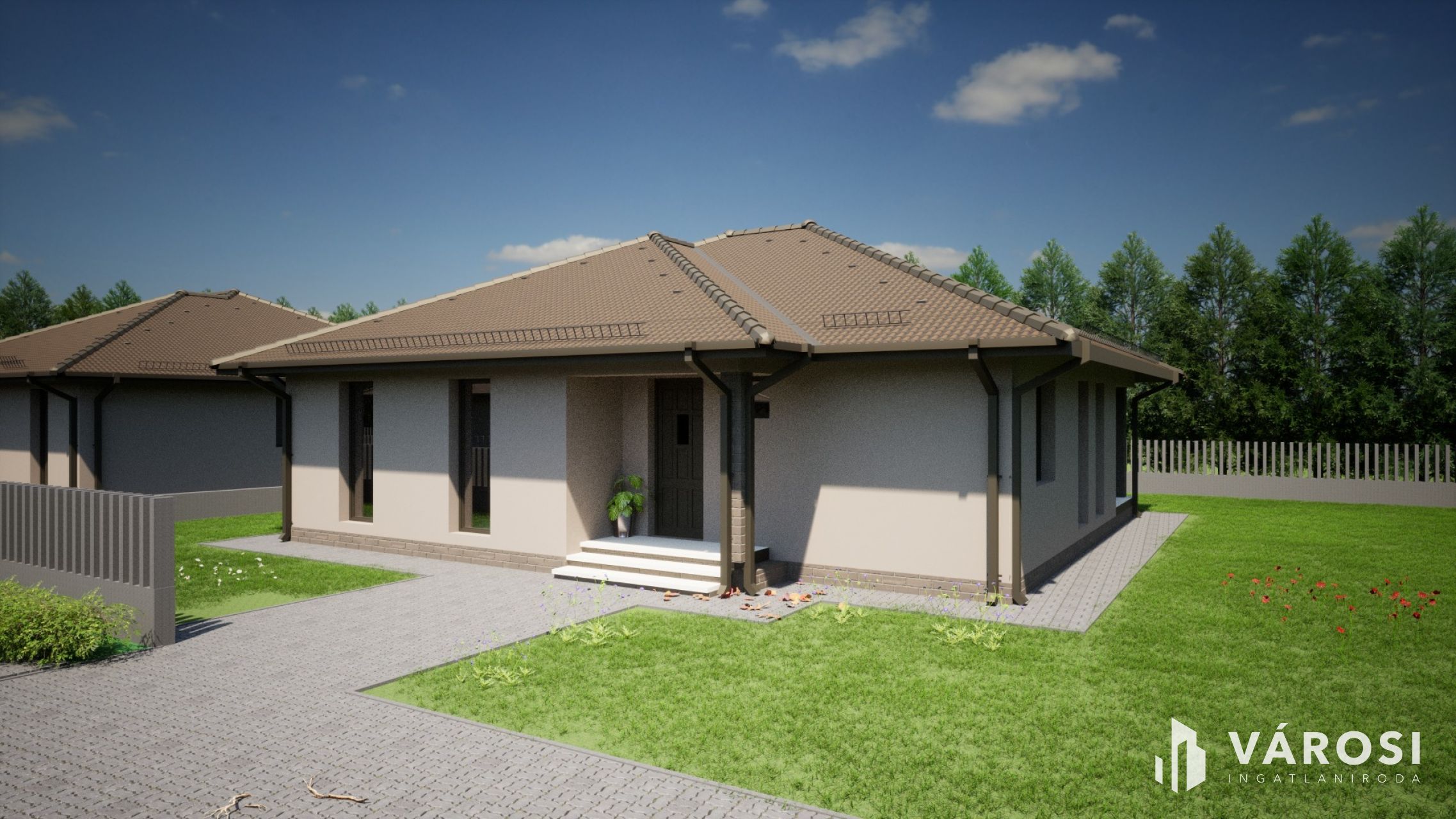 A a 601 m²-es telken. épülő házak már leköthetőek, a nappali + 3 szobás garázs nélküli kivitelben.
