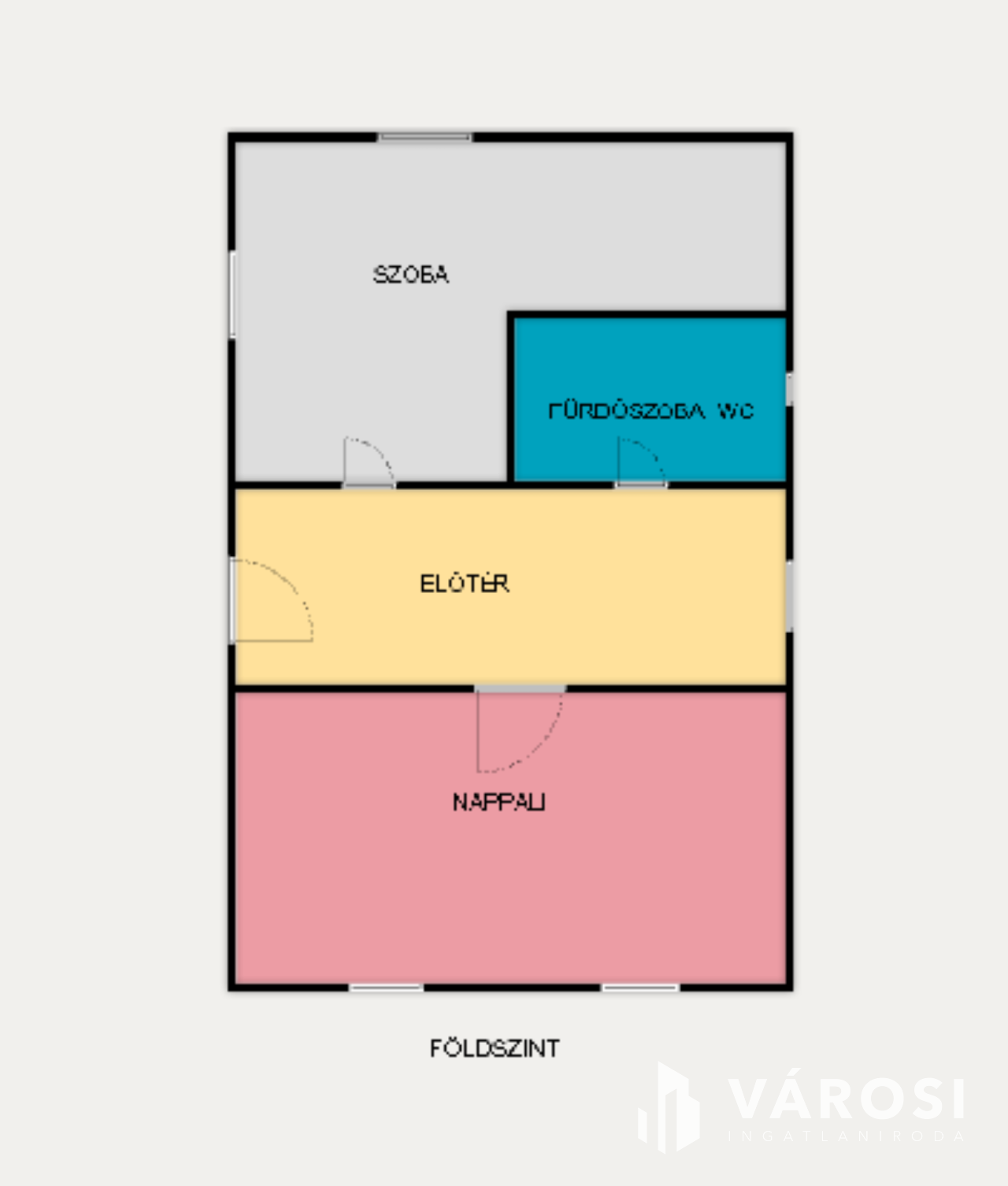 Helyiségek: - alsó szinten szoba, nappali, konyha, fürdőszoba ( WC-vel), előtér.