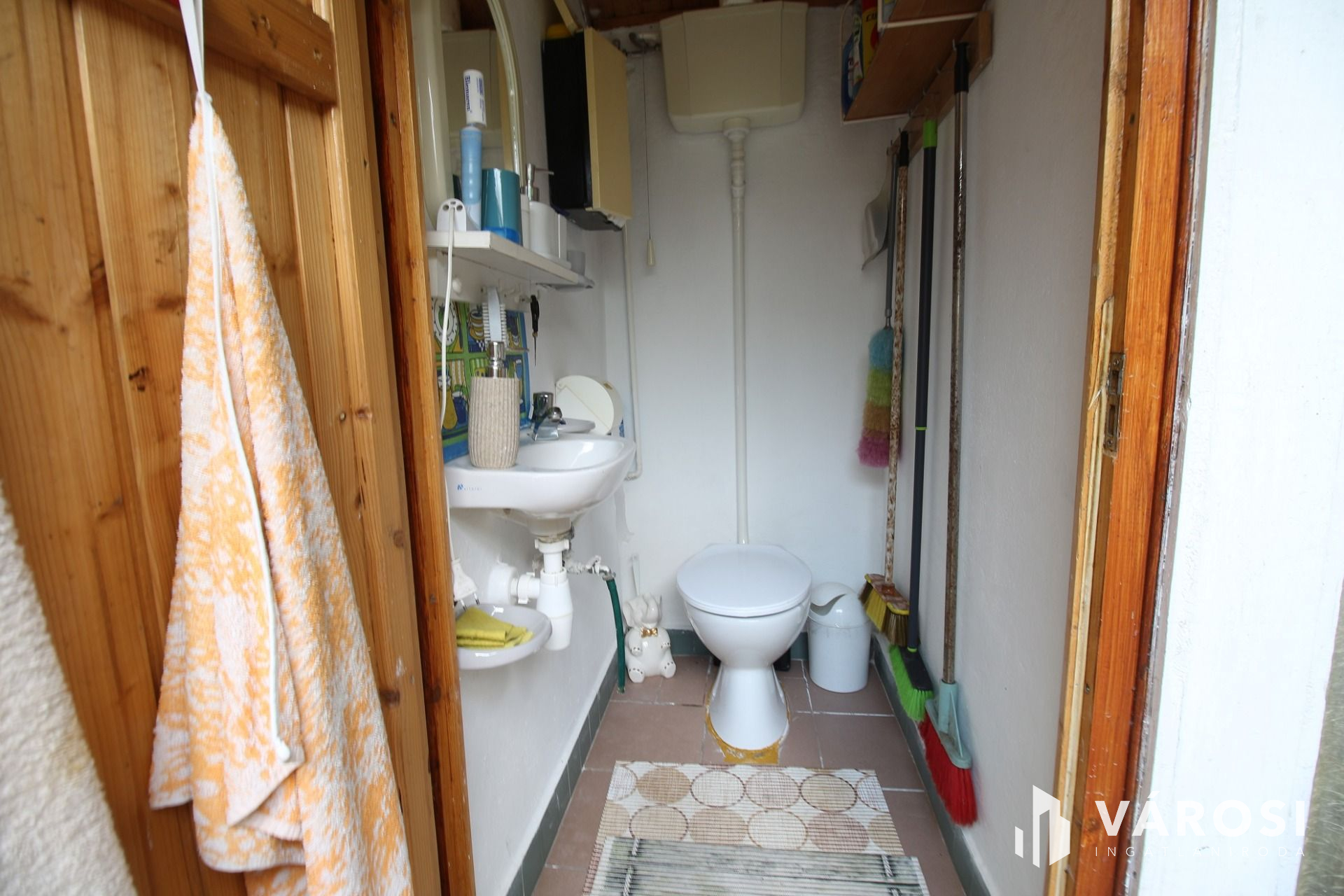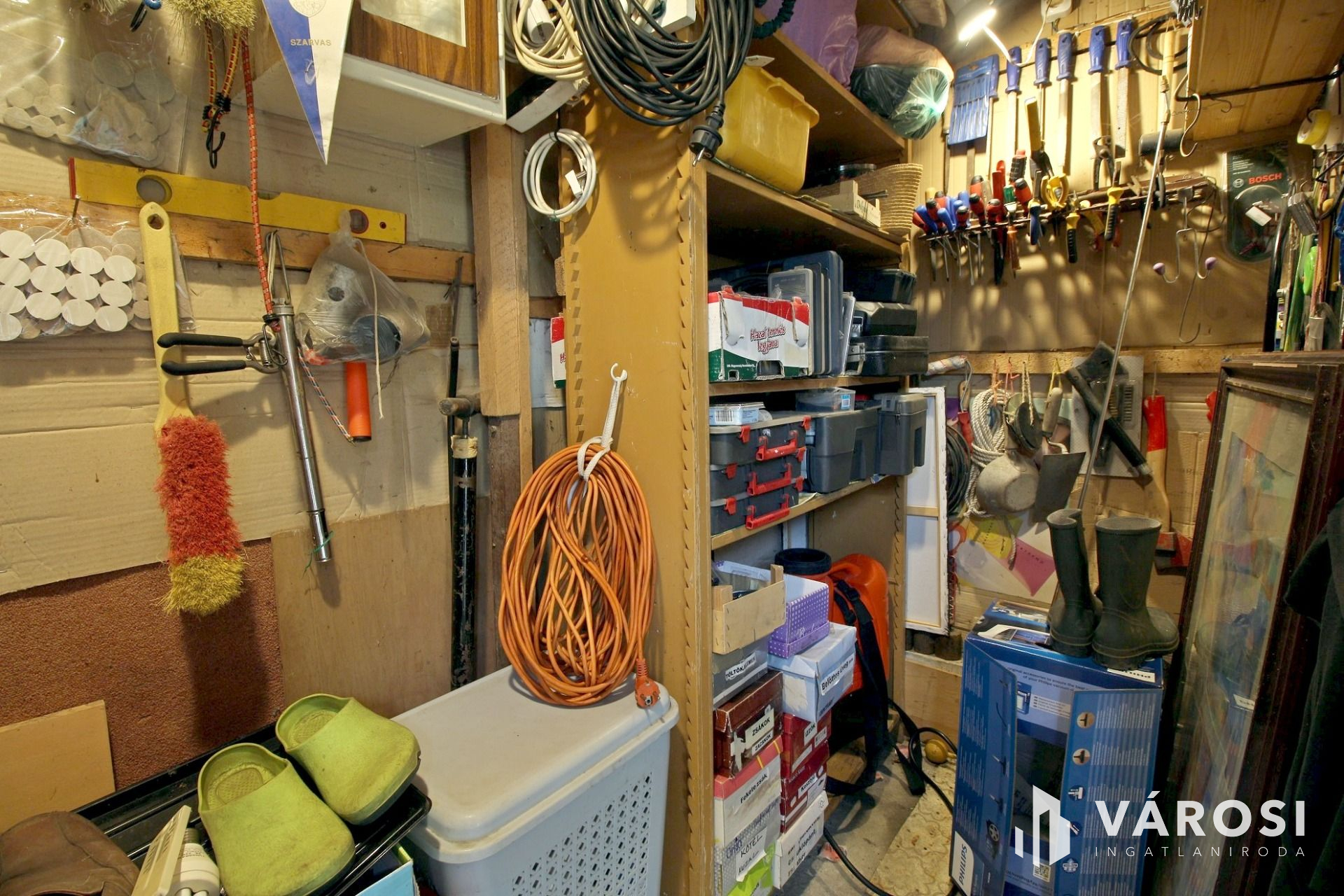 A telken található épület, beton alapon álló zártszelvény vázas, szigetelt faház. Vezetékes víz, villany a házban, gázcsatlakozási lehetőség az utcában, valamint kábeltévé és internet is elérhető. A ház konyhával és zuhanyzóval rendelkezik, külön helyiségben vízöblítéses wc van, de jelenleg fűtés hiányában állandó lakás céljára nem alkalmas. A fő épületet, katonás rendben, felcímkézett dobozokkal bepakolt tárolók és szerszámos helyiség egészíti ki, valamint egy betonozott falú pince és szintén betonozott falú komposztáló.