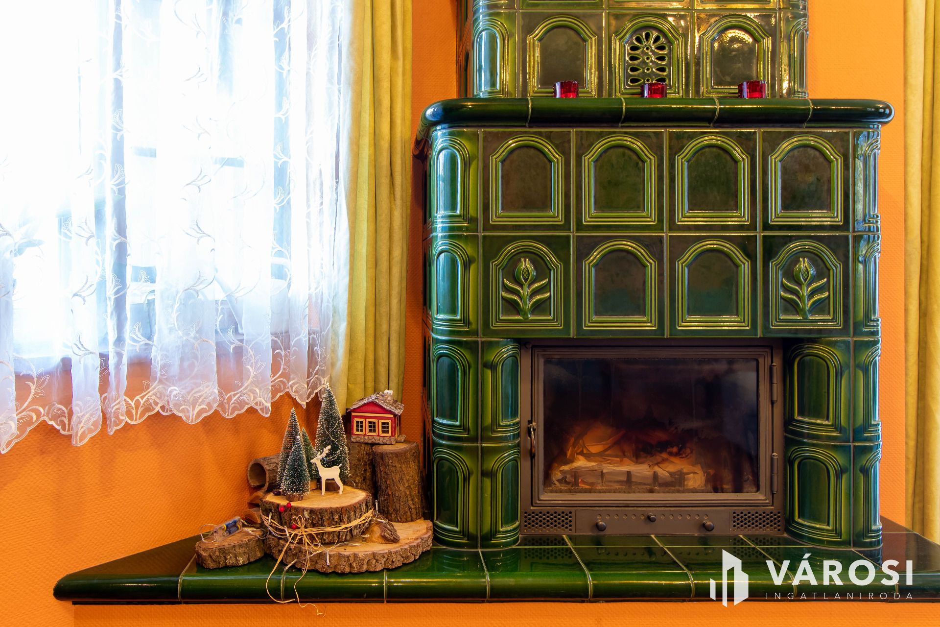 Ez a 2010-ben épült, igényes anyagokból kivitelezett téglaépítésű otthon már első pillantásra is stabil értéket sugall. A külső talán visszafogott, de belépve egy átgondolt, színekkel és terekkel élő, harmonikus világ fogad. A tágas, 37 m²-es nappali a ház lelke: napfényes, barátságos tér, ahol a kandalló melege és látványa különleges hangulatot teremt a téli estéken.