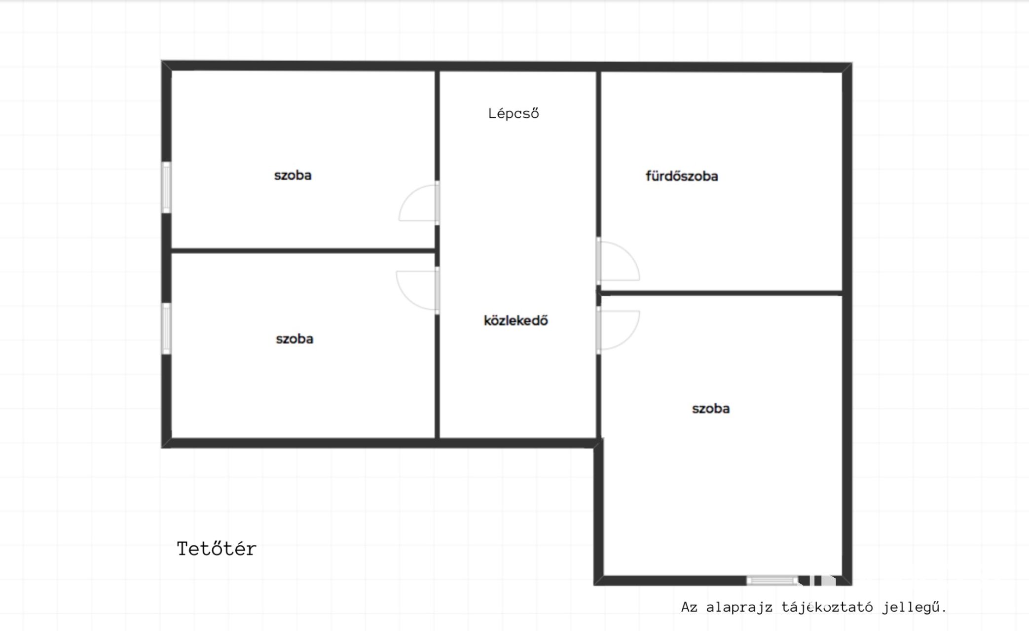 - Tetőrér: 3 hálószoba, fürdő+wc, közlekedő