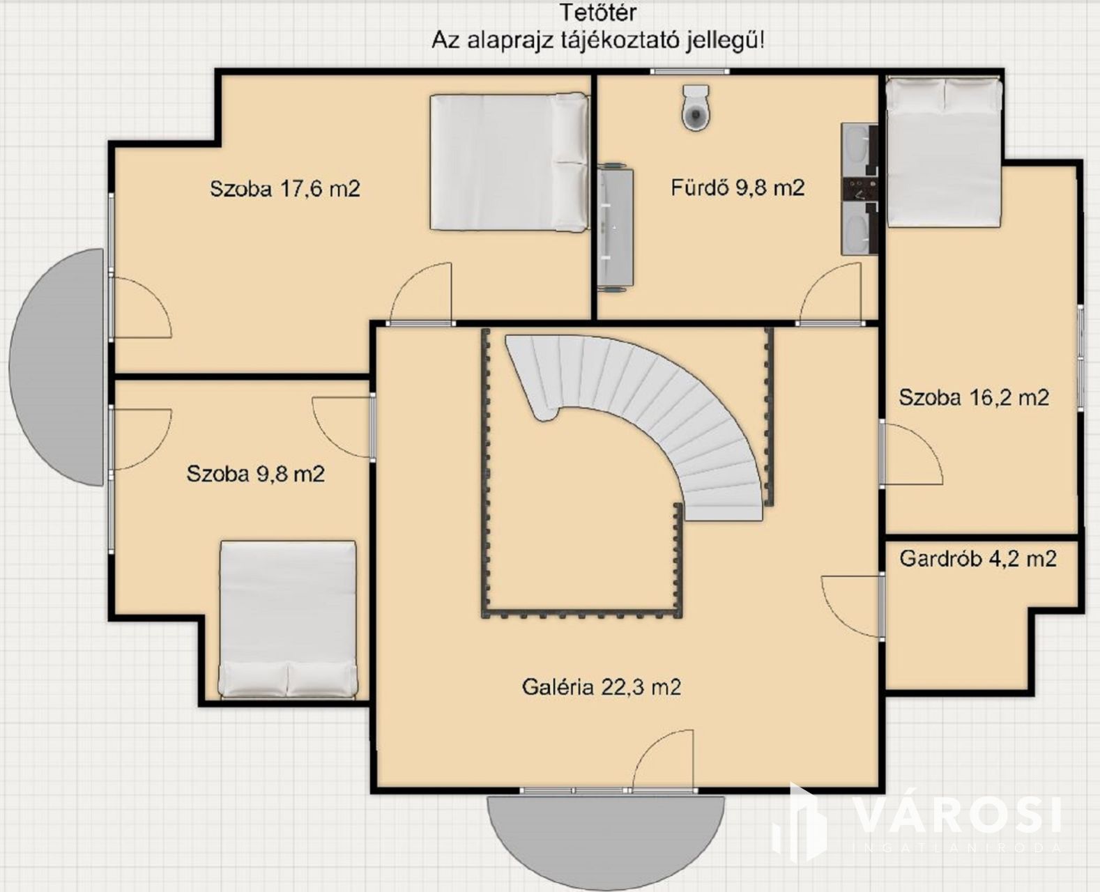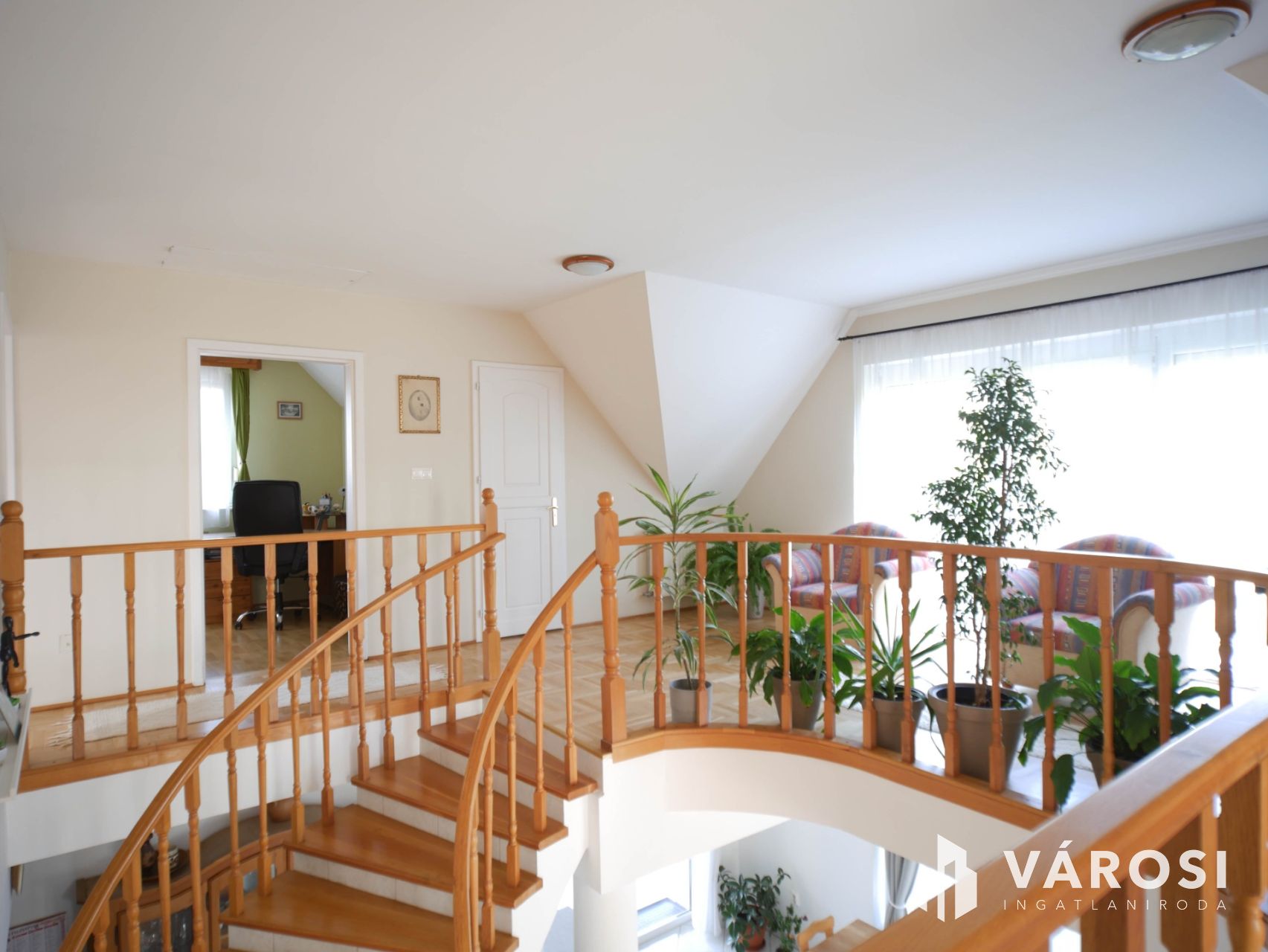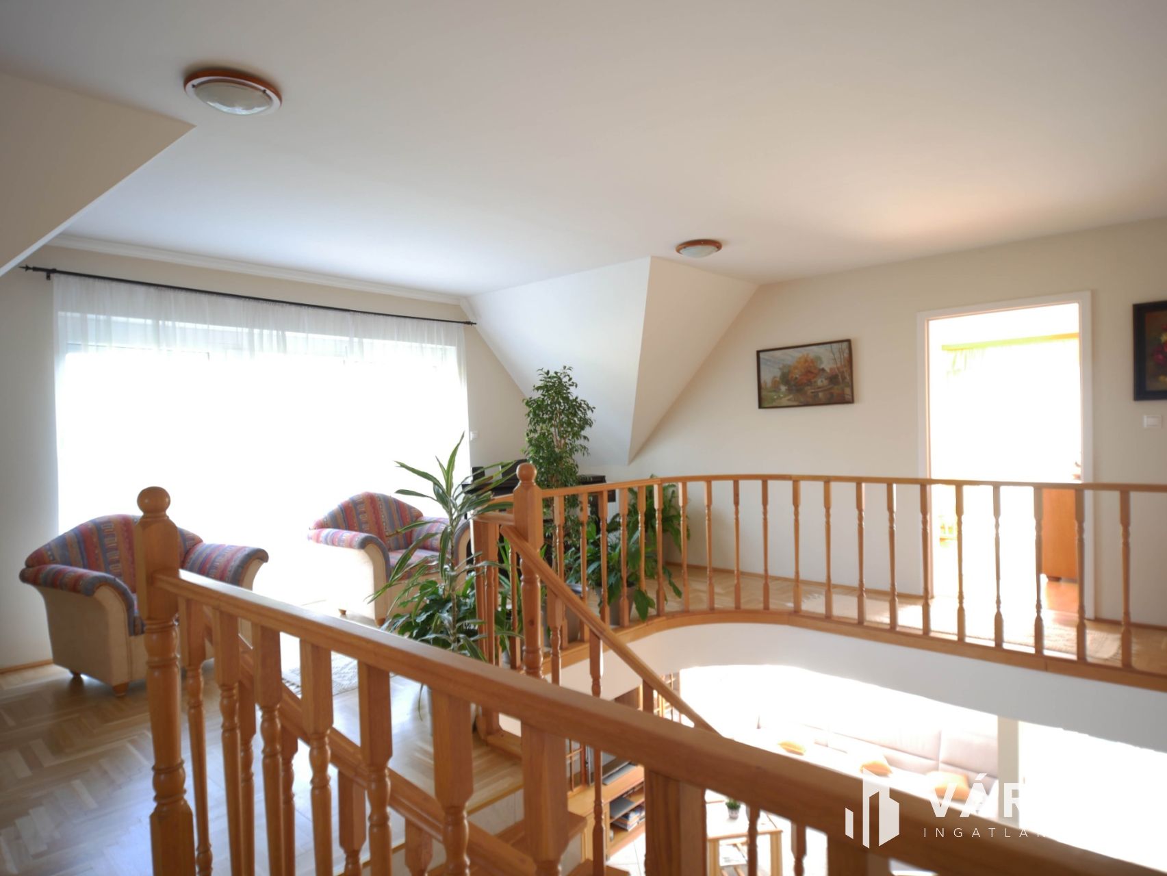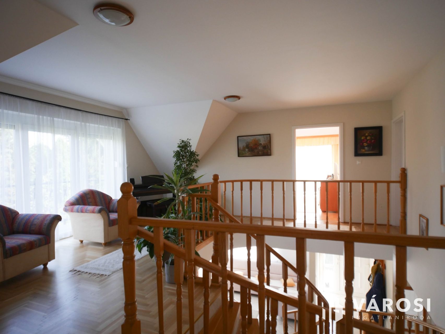 Az emeleten három hálószoba, fürdőszoba, gardrób, galéria és két erkély biztosítja a családtagok számára a nyugodt, szeparált életteret.