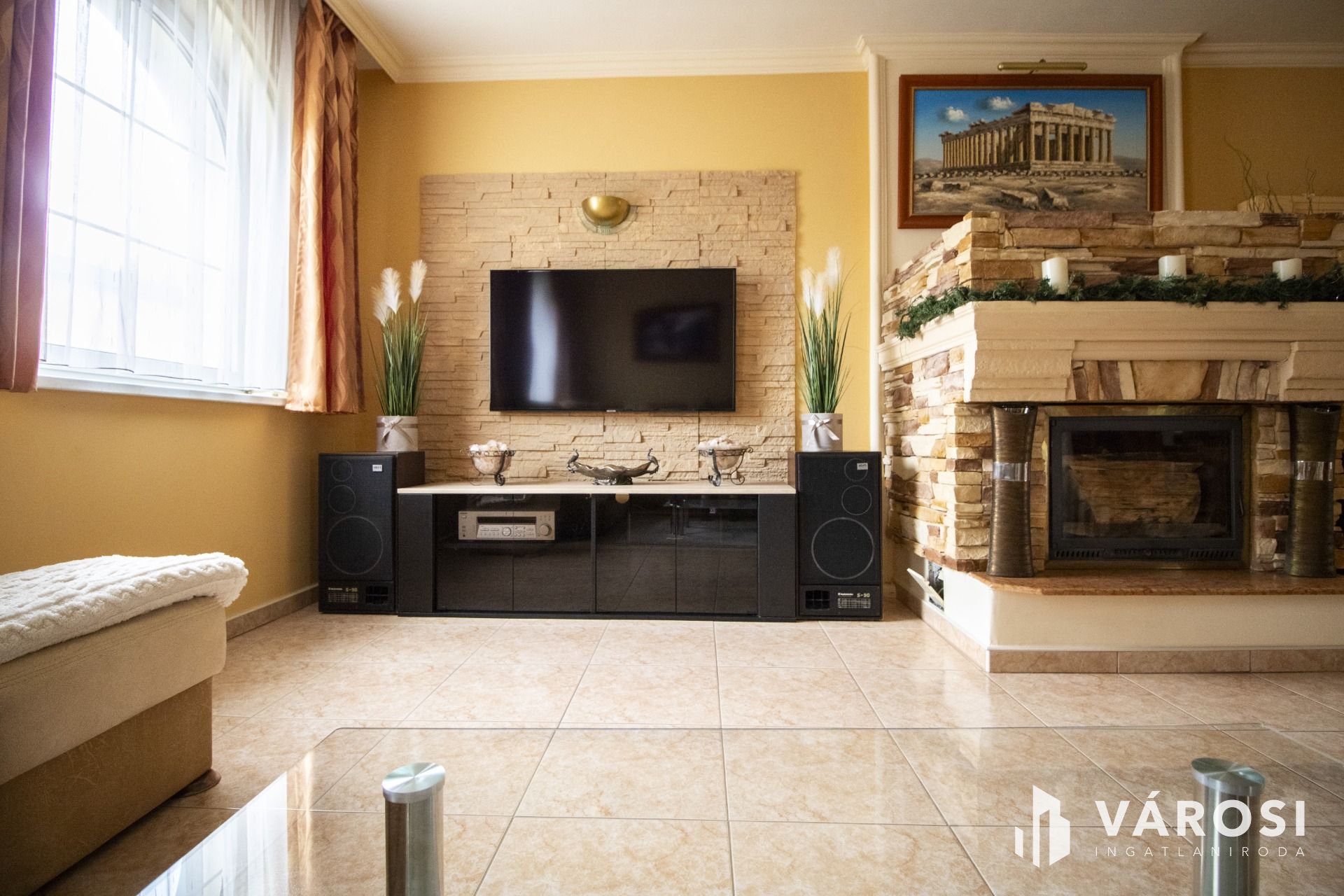A dupla garázs (szerelőaknával) 32 m²-es, így az autók és a barkácsolás szerelmesei is megtalálják a számításaikat. A telken automata öntözőrendszer és dísz- kertvilágítás működik, az ingatlan pedig körbejárható.
