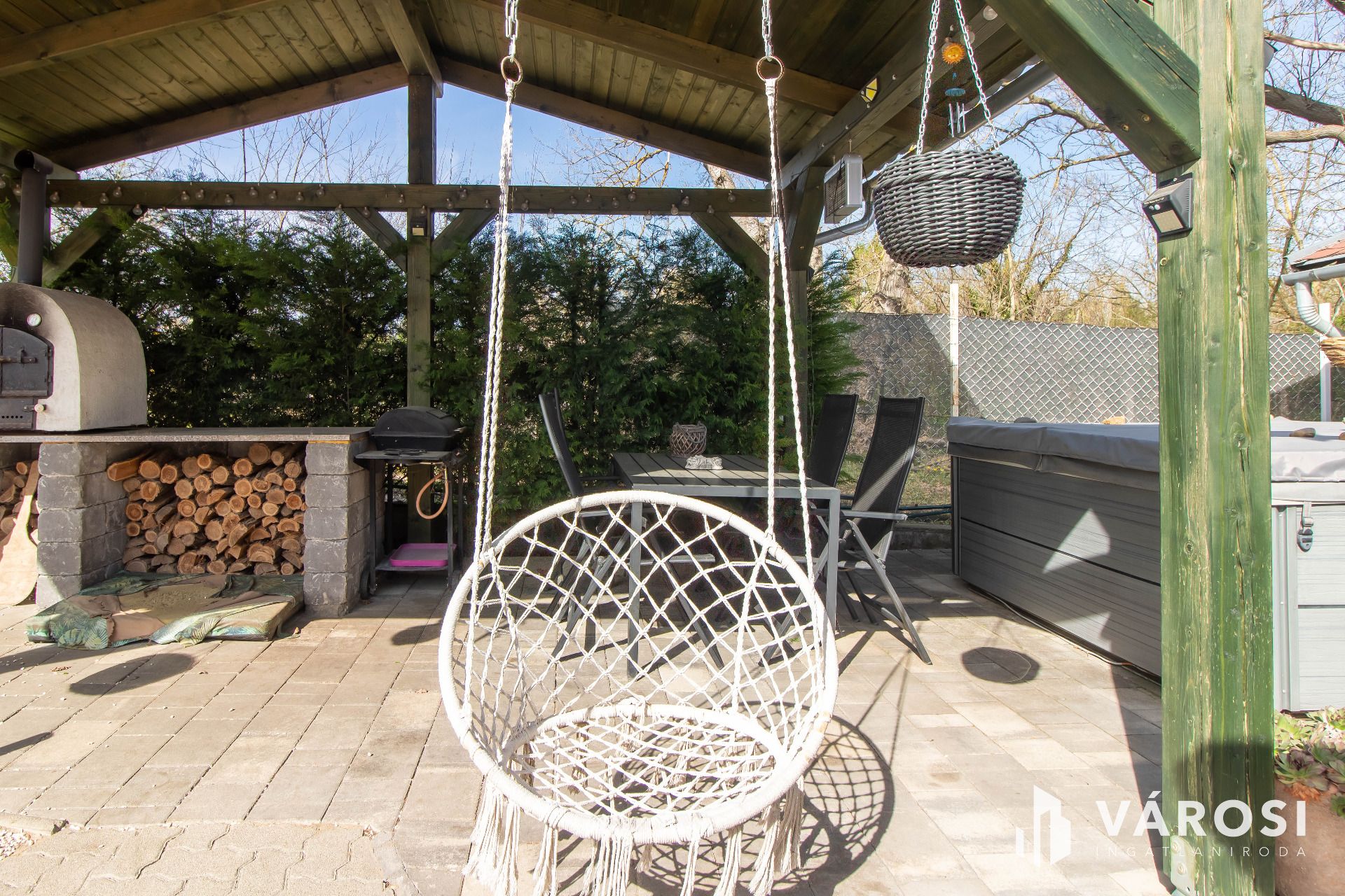 Gondoltak az elektromos autóra is: a töltési lehetőség adott, a bejárat térkövezett, és egy tágas garázs is helyet kapott. A zárt, körbekerített kert valódi édenkert, ahol jakuzzi, veteményes, fiatal gyümölcsfák, fedett terasz és egy hangulatos kemence gondoskodik a tökéletes pihenésről és a baráti összejövetelek élményéről.