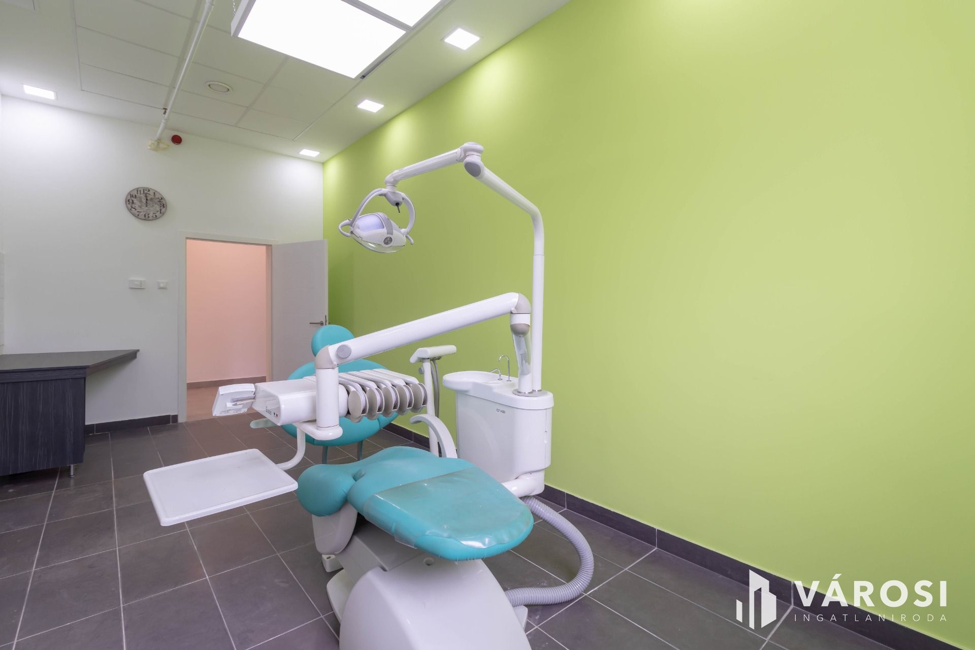 A komplexumban egymás mellett 6 rendelő kiadó, ez a rendelő 20,5 m2 alapterületű, teljesen felszerelt, Optimal 09 kezelőegységgel, fogászati eszközökkel és rendelői bútorzattal ellátott.
