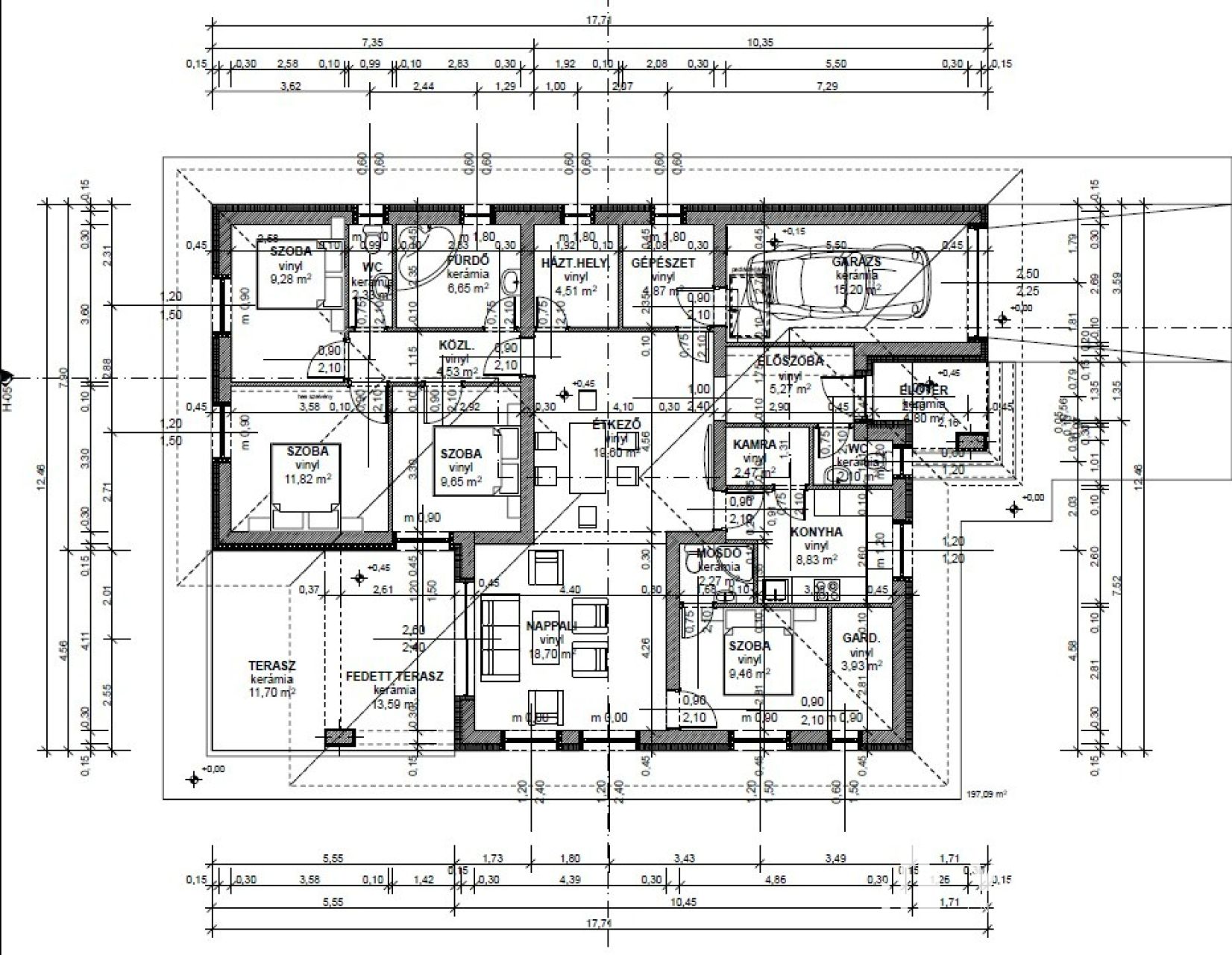 - 171 m² nettó terület teraszokkal együtt, a lakótér 141 m² garázzsal , a telek 871 m²