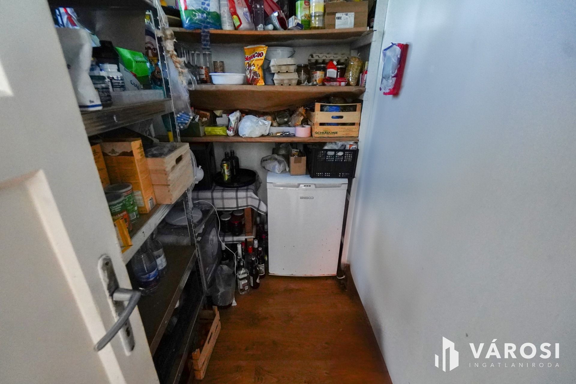 Az előszobából közelíthető meg a két lakószoba, fürdőszoba és a konyha mely méretes kamrával is rendelkezik. Konyhából is biztosított a kertbe történő kijutás ha esetleg elfogyna a rozmaring a főzés közben.
