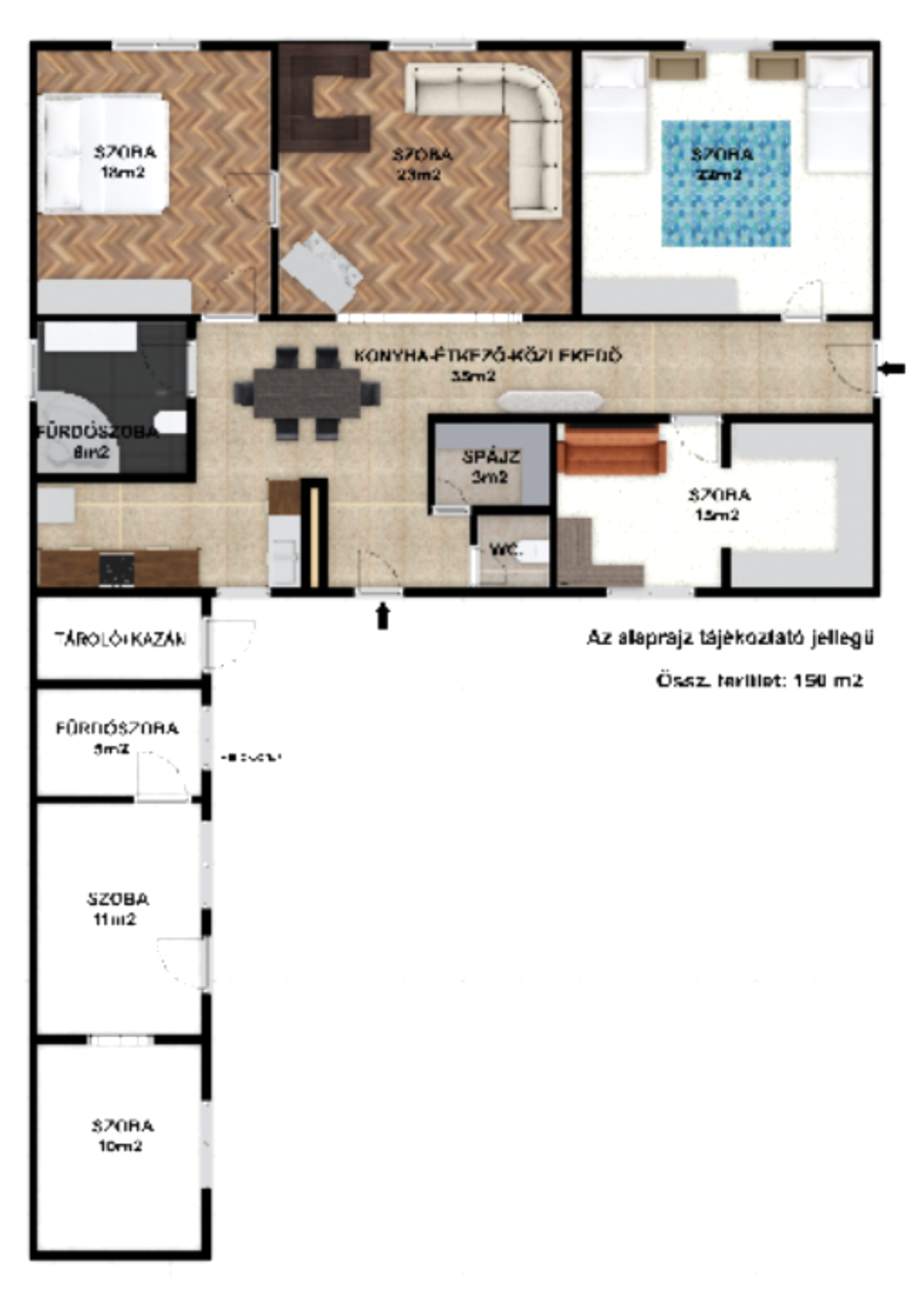 Fő épület jellemzői. -120m2 a terek tágasak, nyitottak.