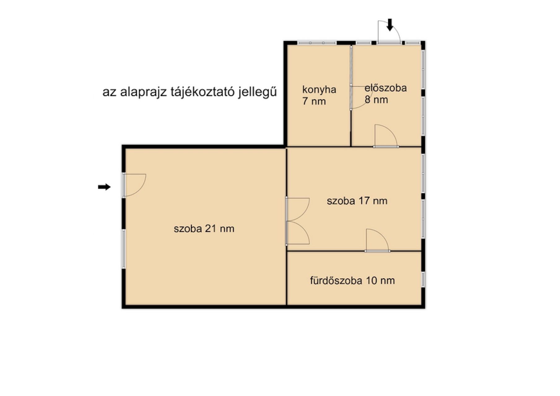 Az ingatlanban két tágas szoba, egy konyha, fürdőszoba és egy tágas előtér található. Különlegessége hogy két bejárattal rendelkezik így akár vállalkozás céljára is használható.