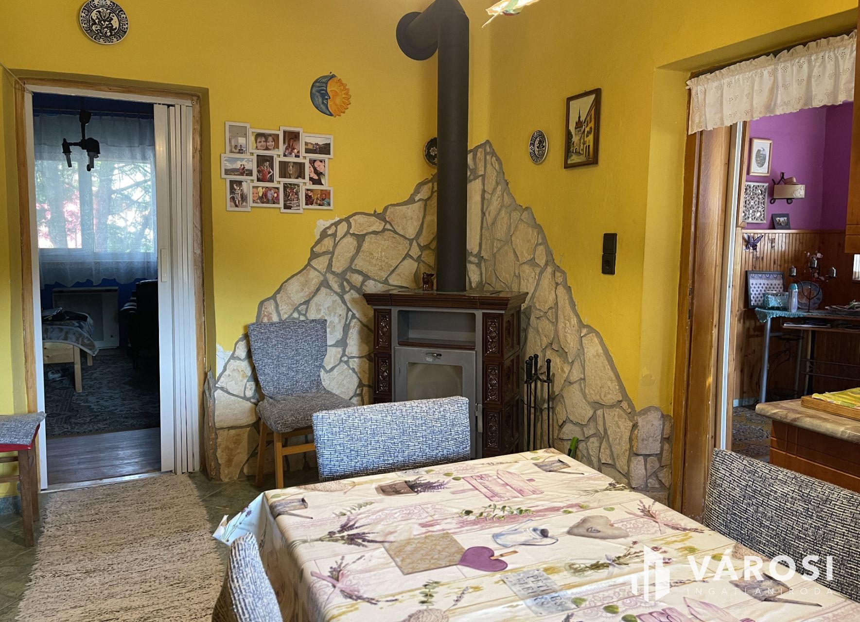 A fűtése gázkonvektorokkal működik és az ebédlőben elhelyezett szép kandallóval, amely a vételár részét nem képezi, külön megegyezés tárgya.
