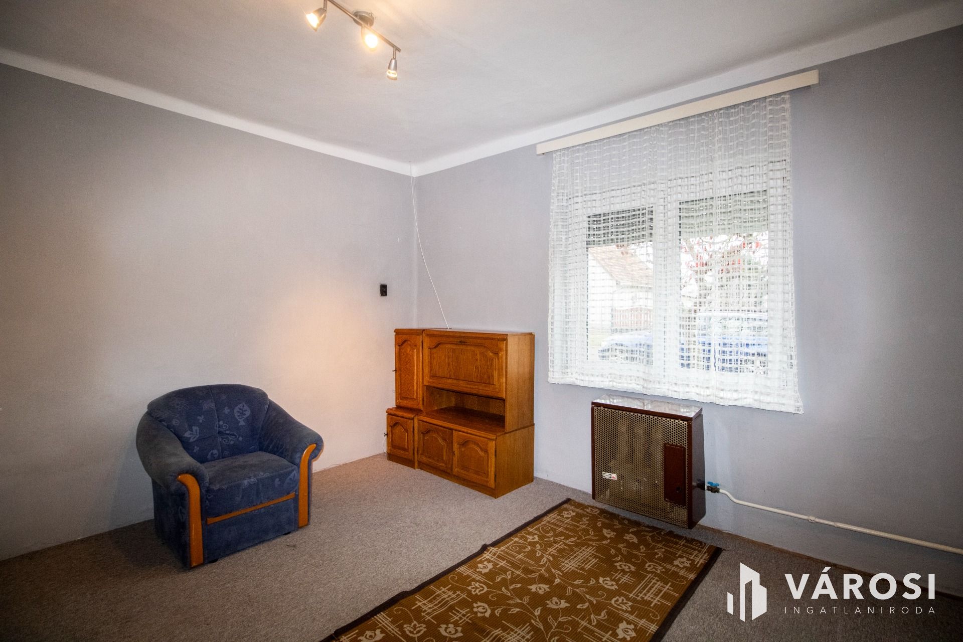 Az előszobából nyílik a 3 szoba. A kádas fürdőszoba villanybojlerrel felszerelt, a mellékhelyiség külön helyiségben található. A konyha-étkező tágas, innen egy második bejáraton keresztül a hátsó udvar is közvetlenül megközelíthető, ami a mindennapokban kifejezetten kényelmes megoldás. A kamra hasznos tárolóteret biztosít, a kb. 6 négyzetméteres fedett terasz pedig kellemes átmenetet képez a lakótér és a kert között.