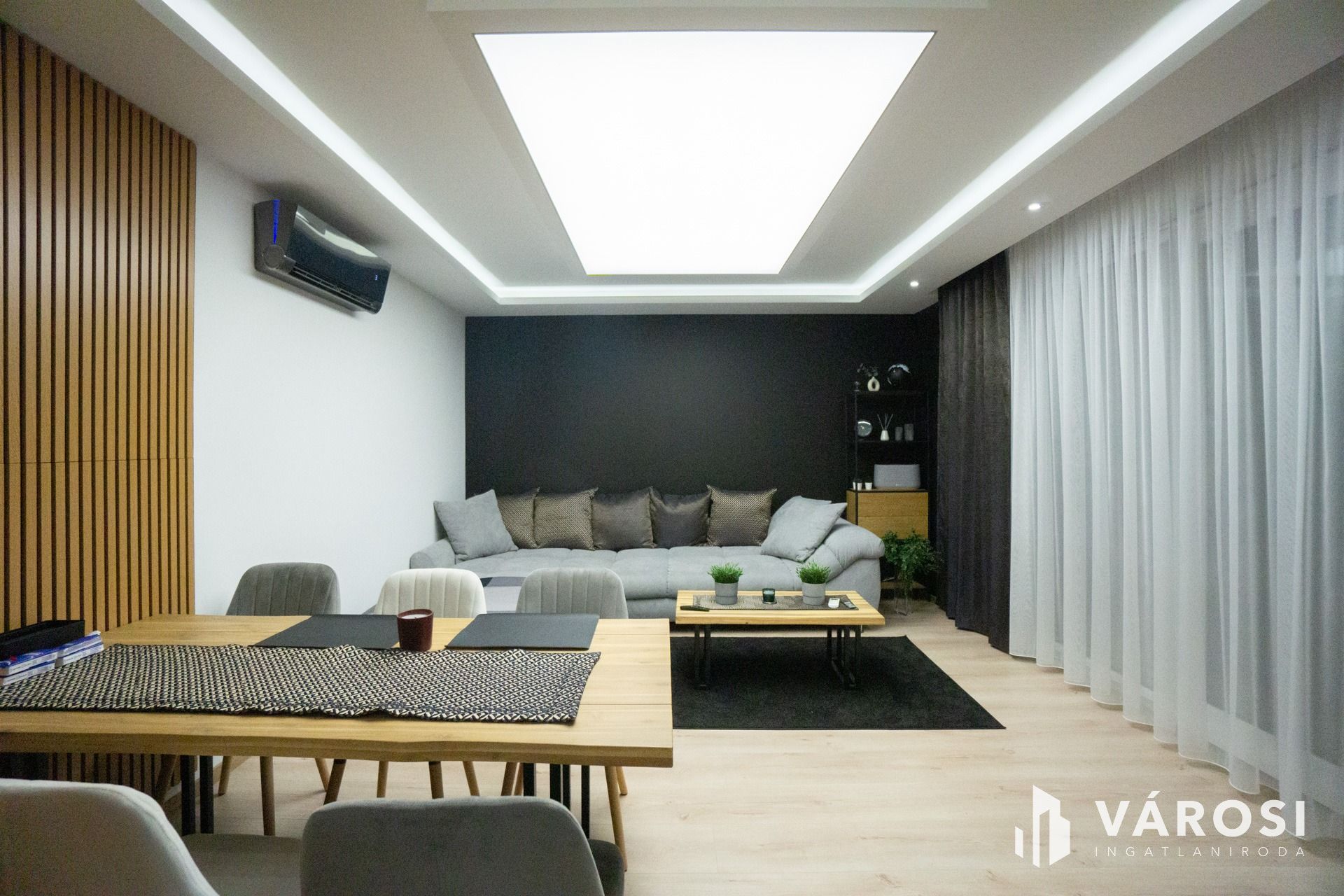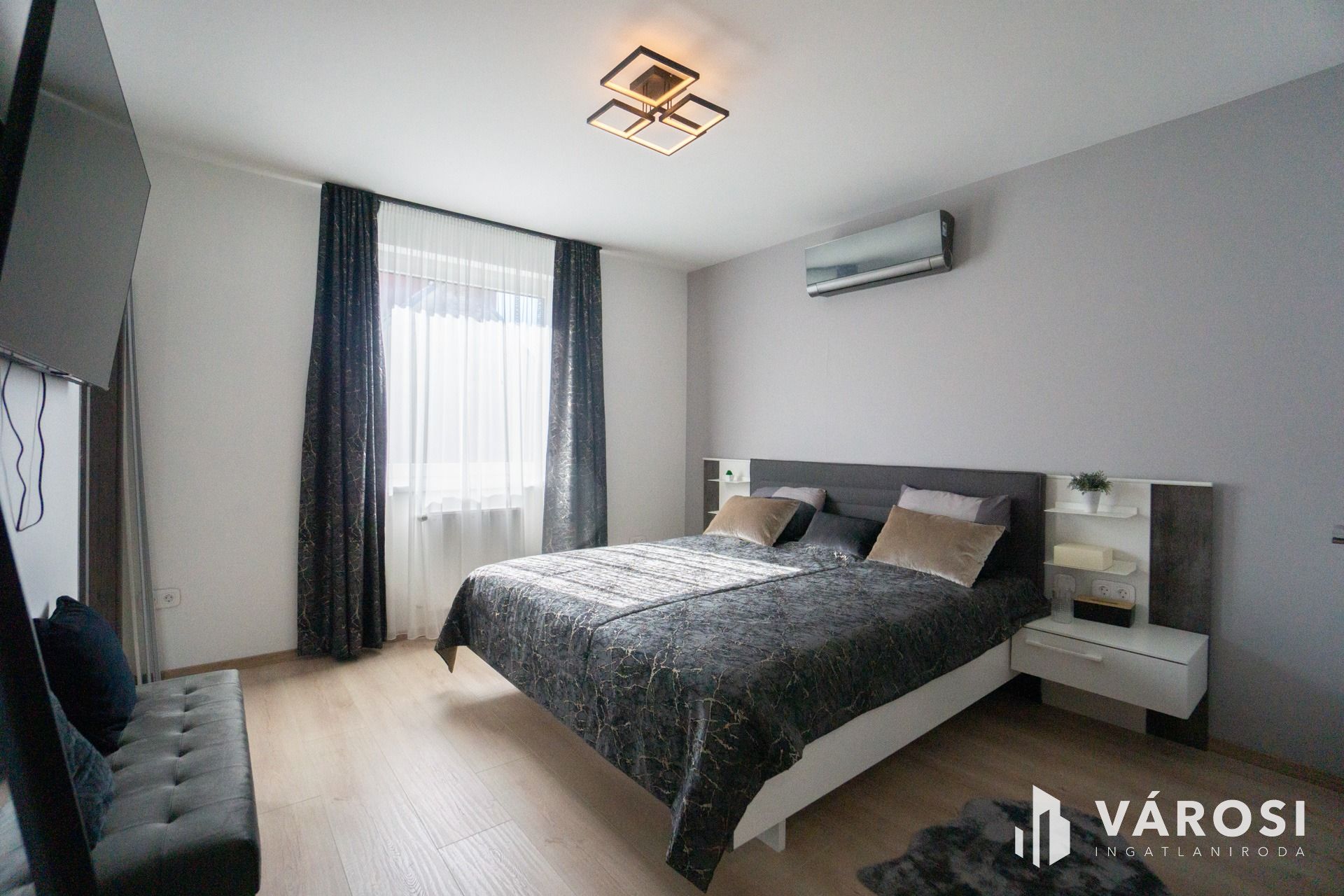 A lakásban felszerelésre került egy hűtő-fűtő klíma, ami biztosítja a mindig kellemes hőmérsékletet.