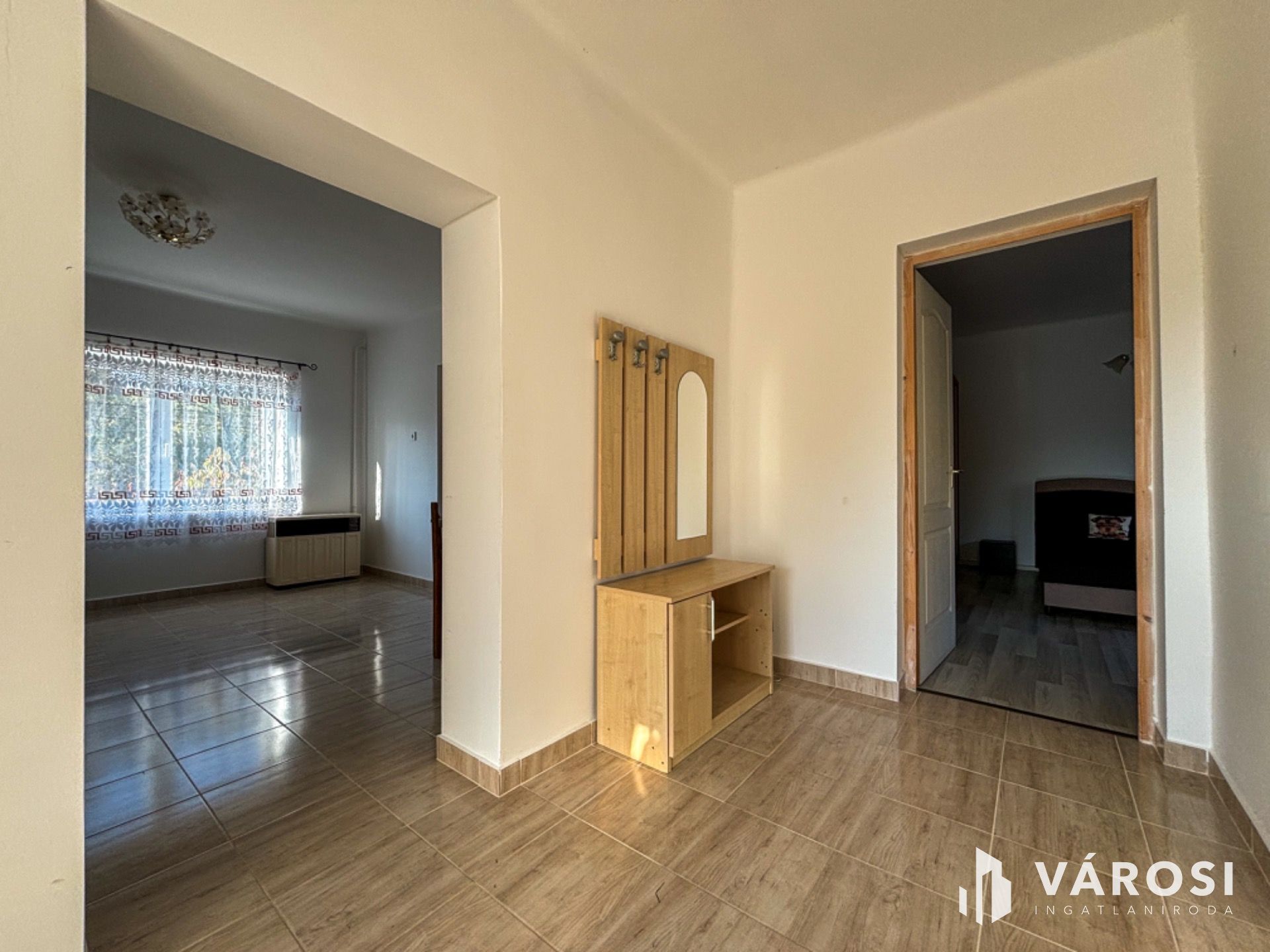 Helyiségei: a felső szinten előszoba, 2 szoba, konyha, fürdőszoba, előtér, az alsó szinten 34 nm-es pince/tároló.