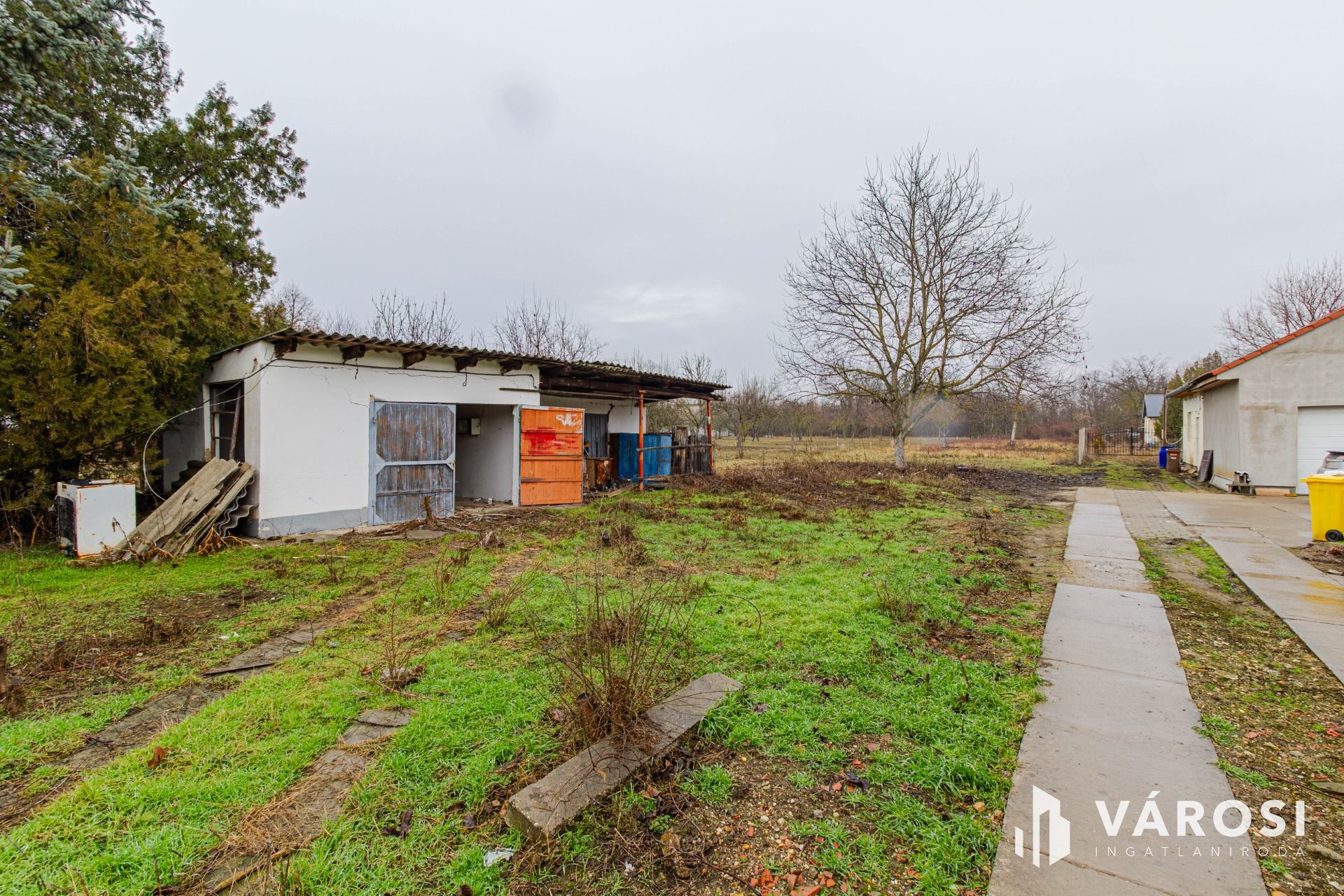 100 m²-es lakóház(alatta pince) + 2 melléképület – Erősen felújításra szorul vagy bontással tiszta fejlesztési terület nyerhető.