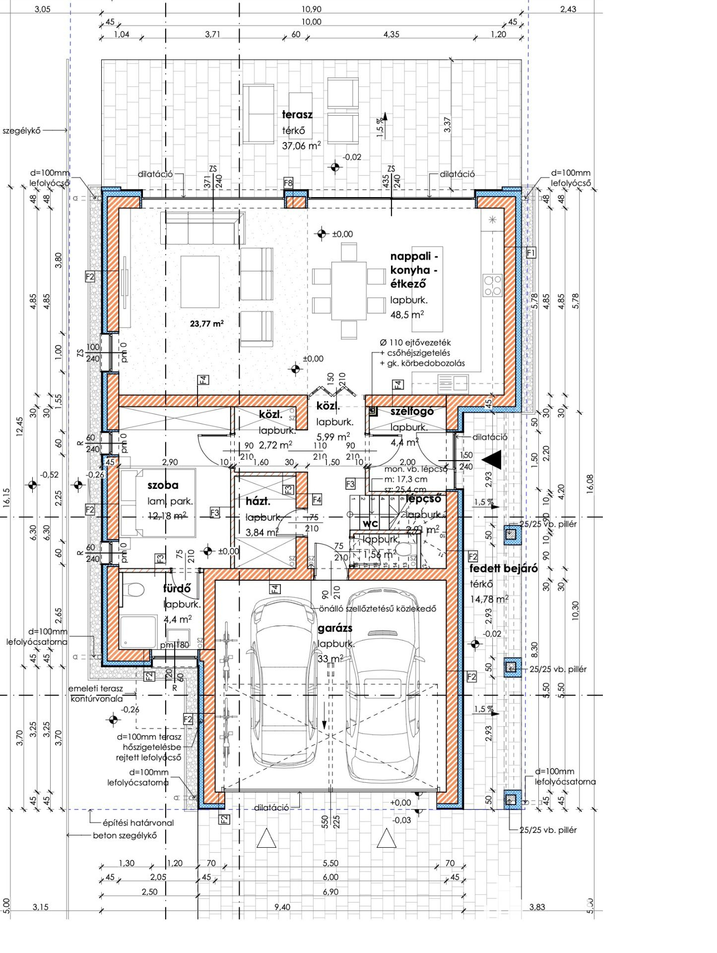 - nettó alapterület: 165 m2 + 20,1 m2 fedett bejáró és erkély + 37 m2 terasz