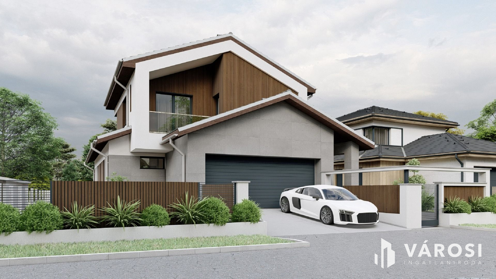 - külső részen: térburkolást a garázsbejáróban, ajtóban, termőföld feltöltést, kerítést