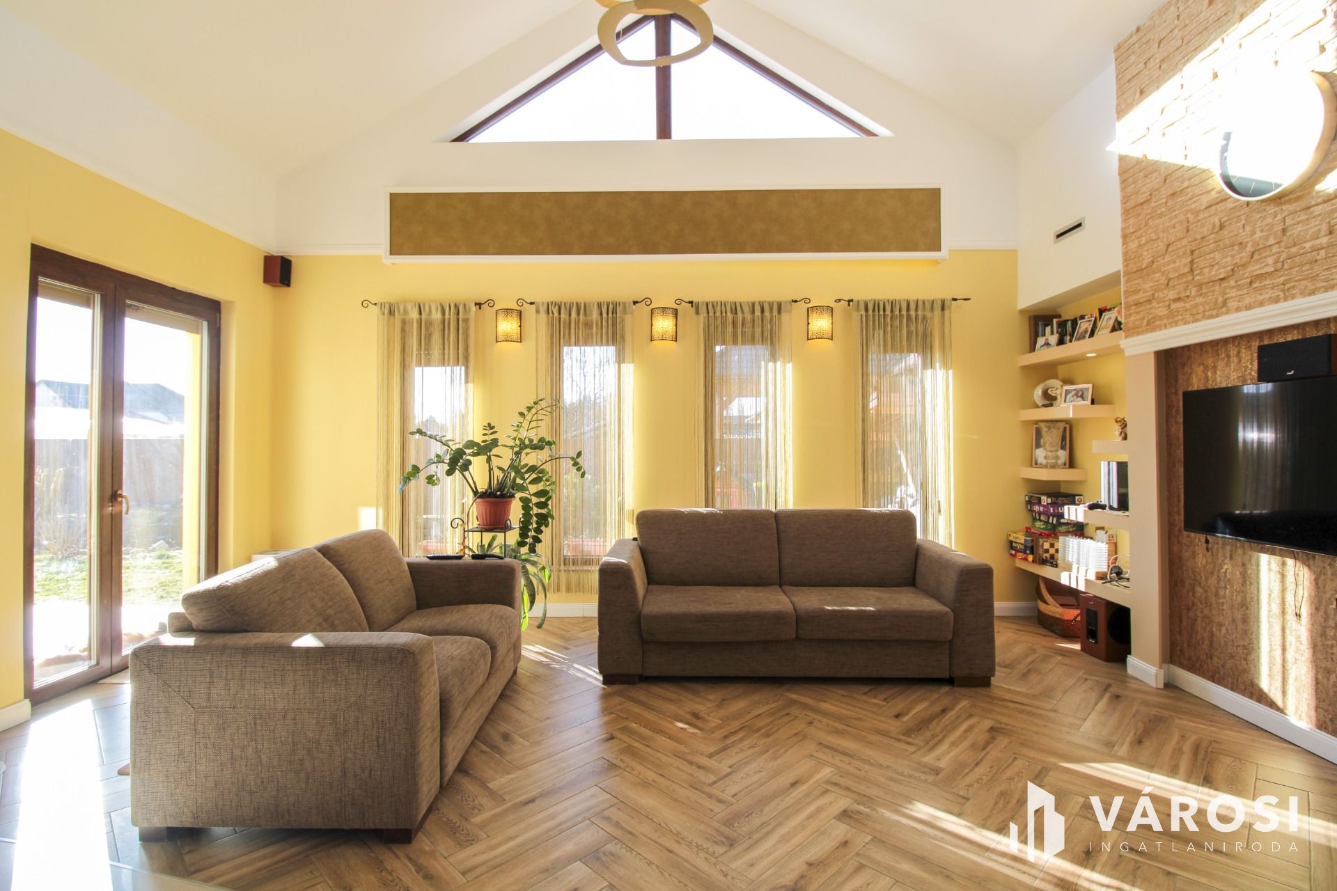 Az ingatlan elosztása és kialakítása a családi életre és a közösségi terek maximális kihasználására lett tervezve. Az amerikai konyhás nappali modern, letisztult stílusban készült, dekorvilágítással kiegészítve, amely otthonossá és barátságossá teszi a teret. 3 hálószoba, dupla fürdőszoba (egy kádas és egy zuhanyzós), háztartási helyiség, kamra és a szülői hálóban gardrób került kialakításra. A nappali a hátsó kertre nyíló, 45 m²-es teraszra vezet, amely tökéletes helyszínt biztosít a családi eseményeknek, ahol a kemence, a grillező, a szalonnasütő és a bográcsozó mind a kulináris élmények megélését szolgálják.