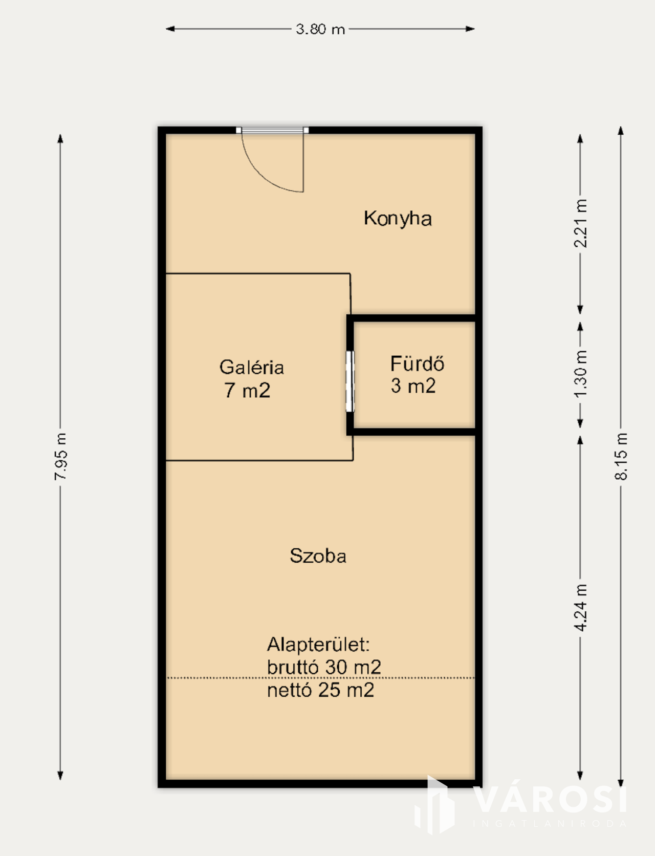 A 37 m2-es alapterület a nagy belmagasság miatt sokkal tágasabb hatást kelt.