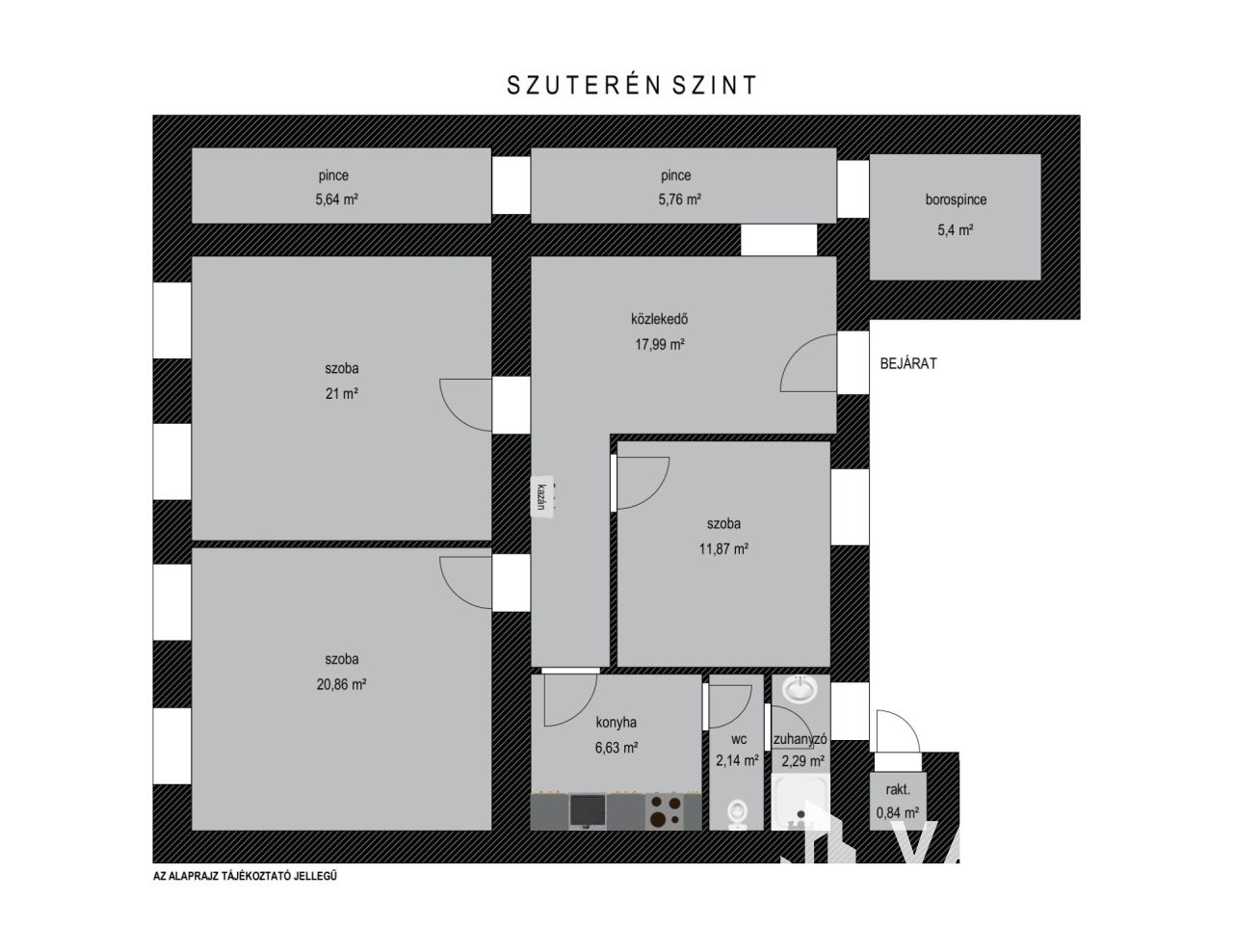 A szuterén szint is lakhatásra alkalmas, egyetemisták részére kiadás céljából remek lehetőség volt, jelenleg felújításra szorul.
