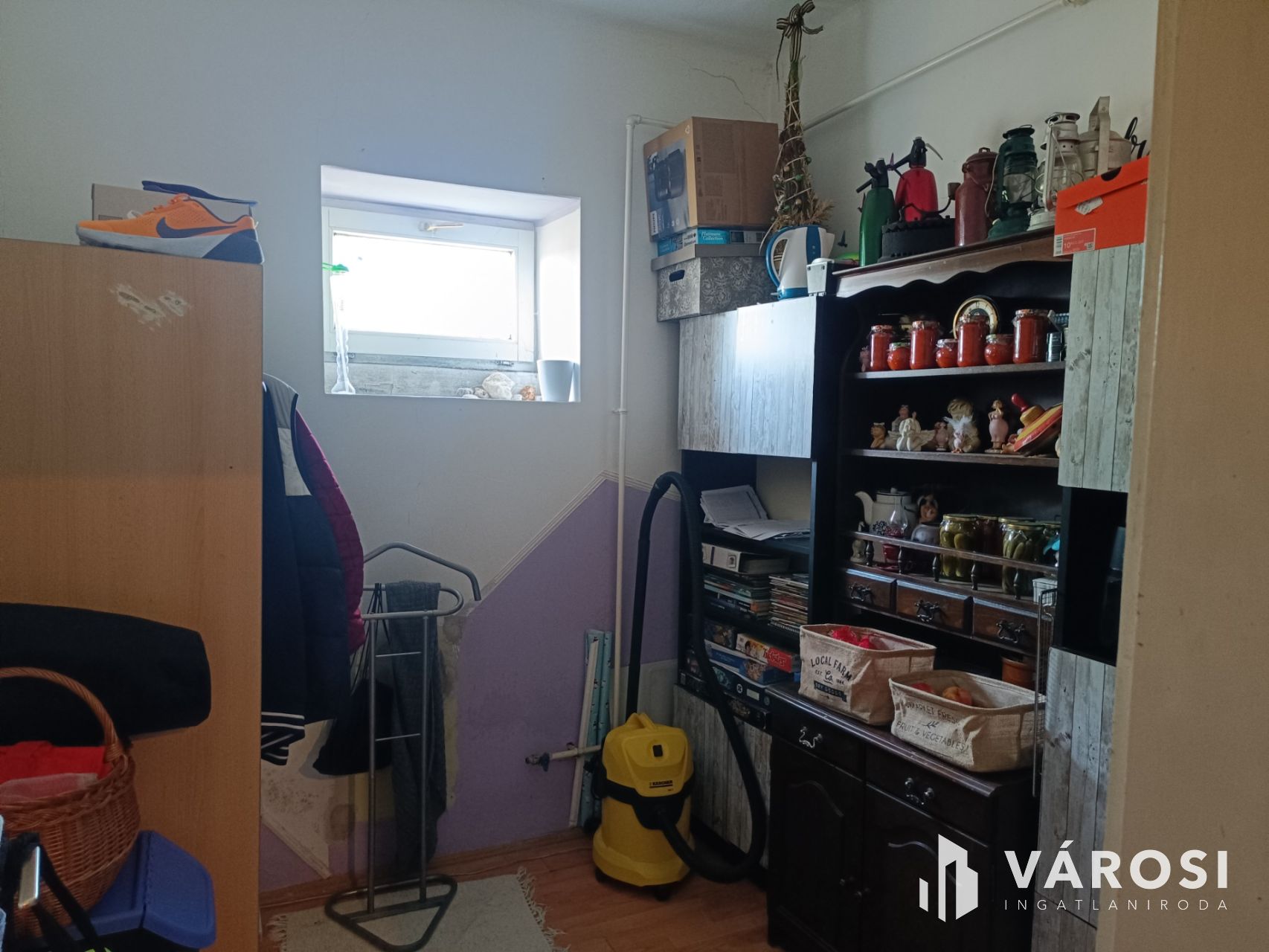 A fedett teraszról a folyosóra jutunk, melynek végén egy kis cukrász helyiség található. A bejárattal szemben a konyha helyezkedik el, innen nyílik a fürdőszoba, egy tároló, valamint jobbra a szobák. A két nagy szoba egymásból nyílik, mindkettőt működőképes cserépkályha díszíti.