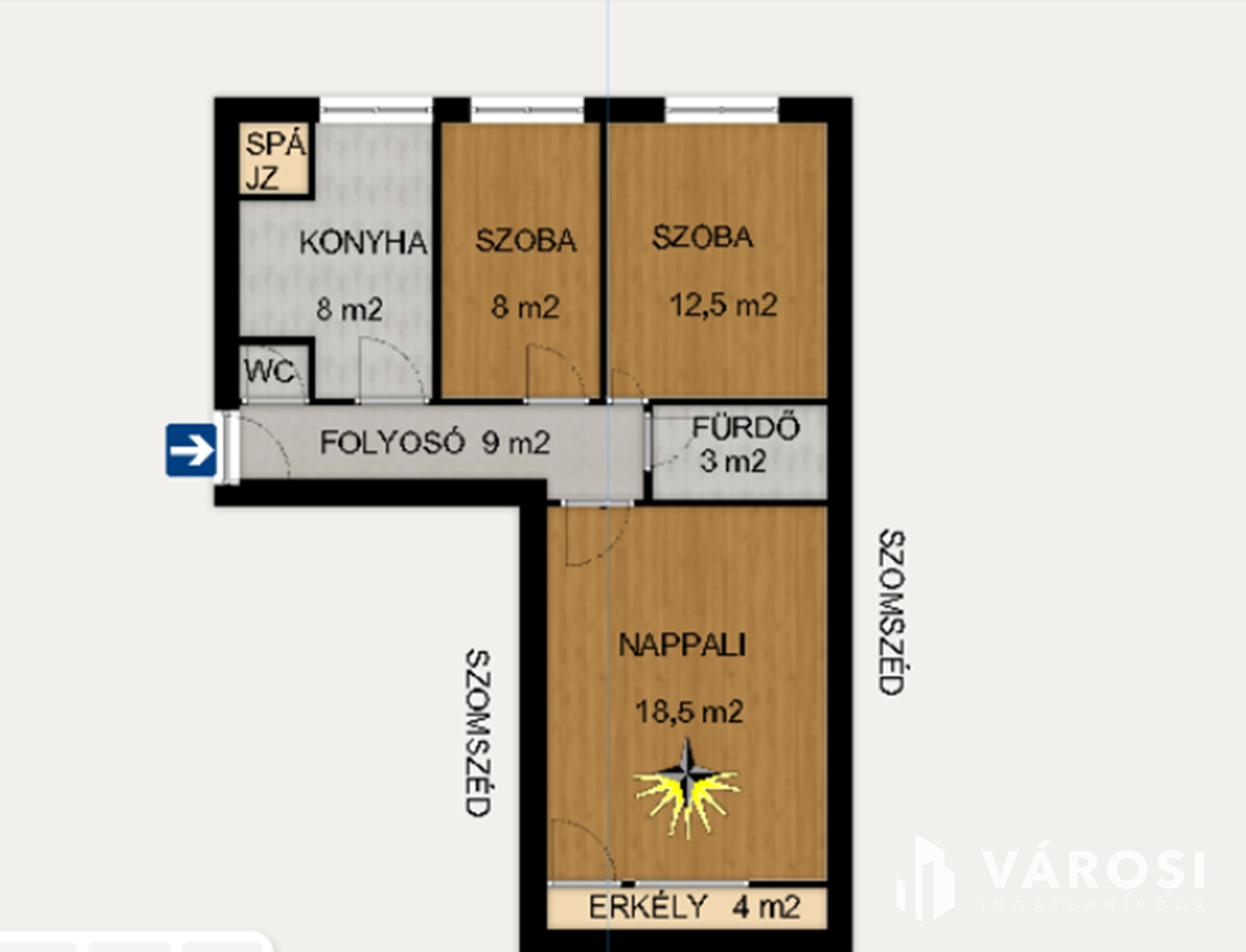 A lakás 4. emeleti, így fenti szomszéd nem kopog.