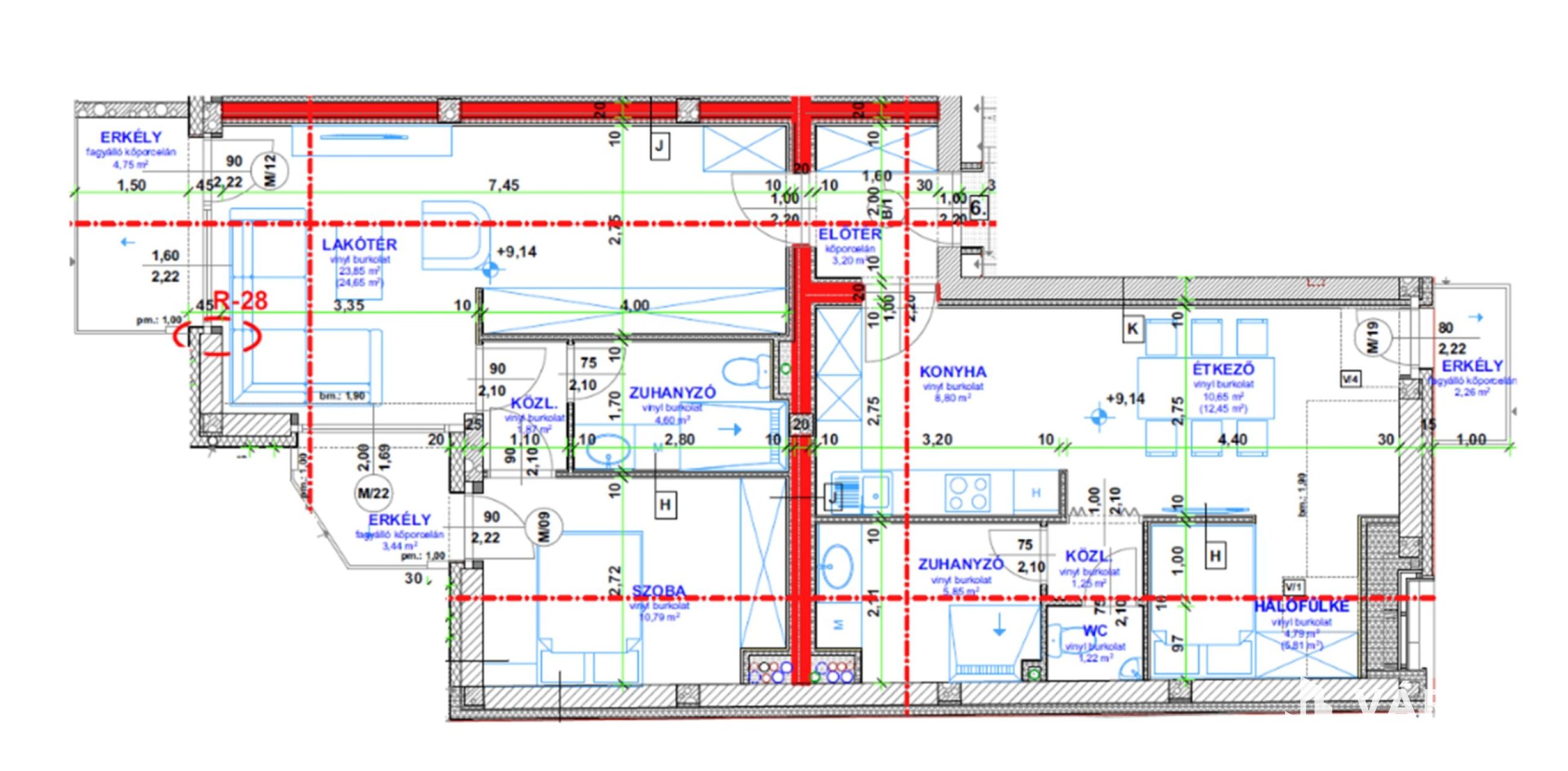 1. Lakás 82,17 m2 + 11,42 m2 (erkély)