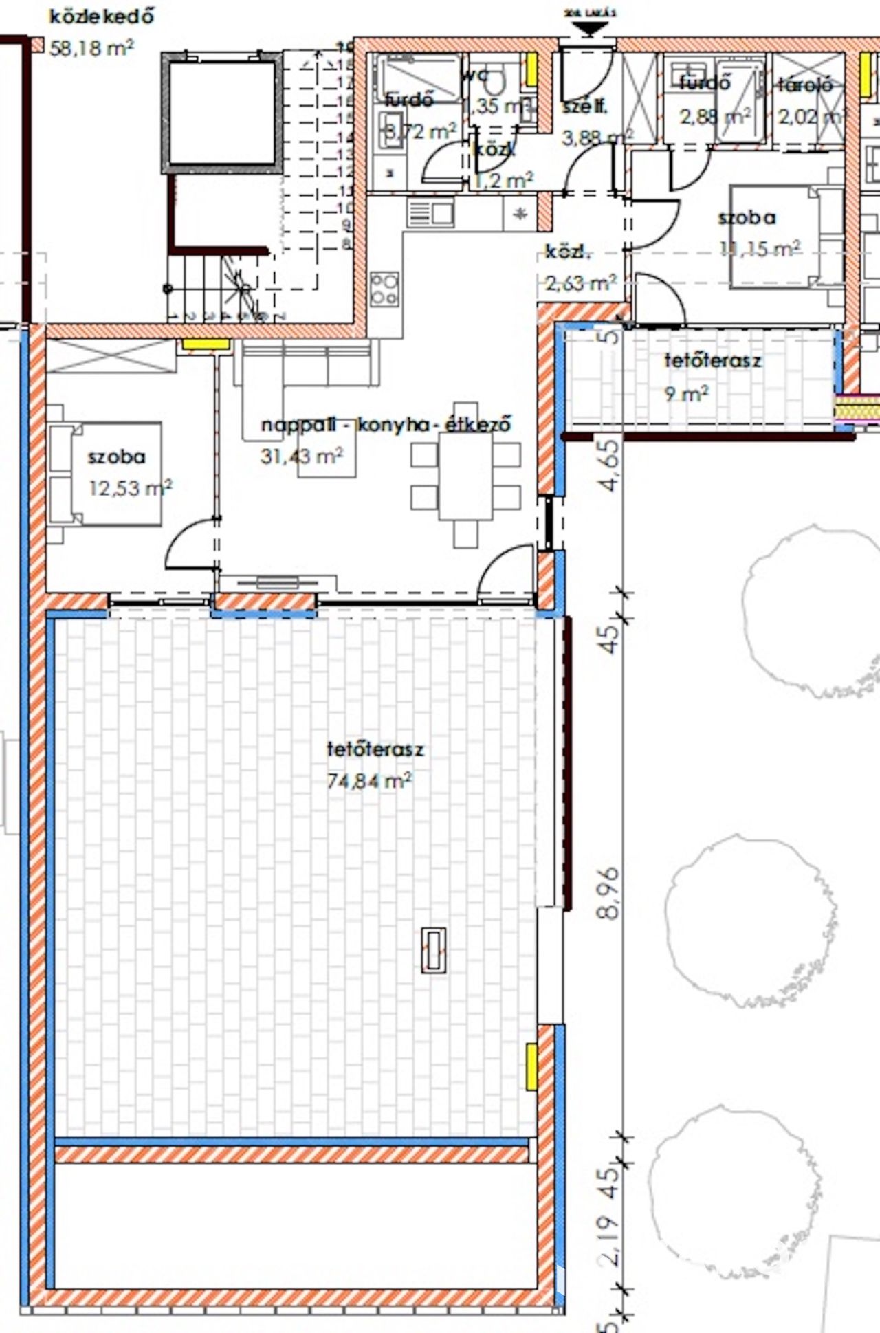 Makón, presztizs lokációval rendelkező - Makói fürdőtől 30 méterre - a Szent János téren - A Napfény Residenceben - , Eladó egy most induló, tégla építésű, MÁSODIK EMELETI , 119,21 nm-es élettérrel rendelkező, amerikai konyha nappali plusz kettő szobás, dupla fürdős, loggiás, 30 nm-es tetőteraszos 75 m2 -es lakás (208.lakás), liftes házban.
