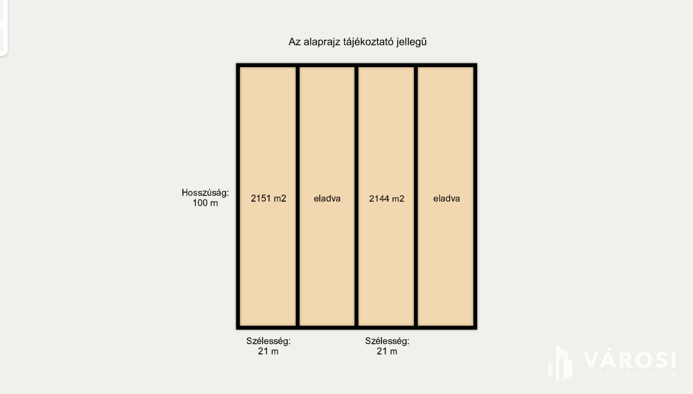 Méretek / telek: Hossz: 100 m, szélesség: 21 m