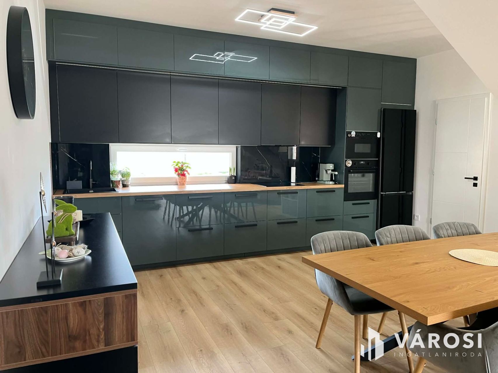 - **Szobák száma:** 3 szoba (az egyik jelenleg gadróbként funkcionál) + amerikai konyhás étkező-nappali