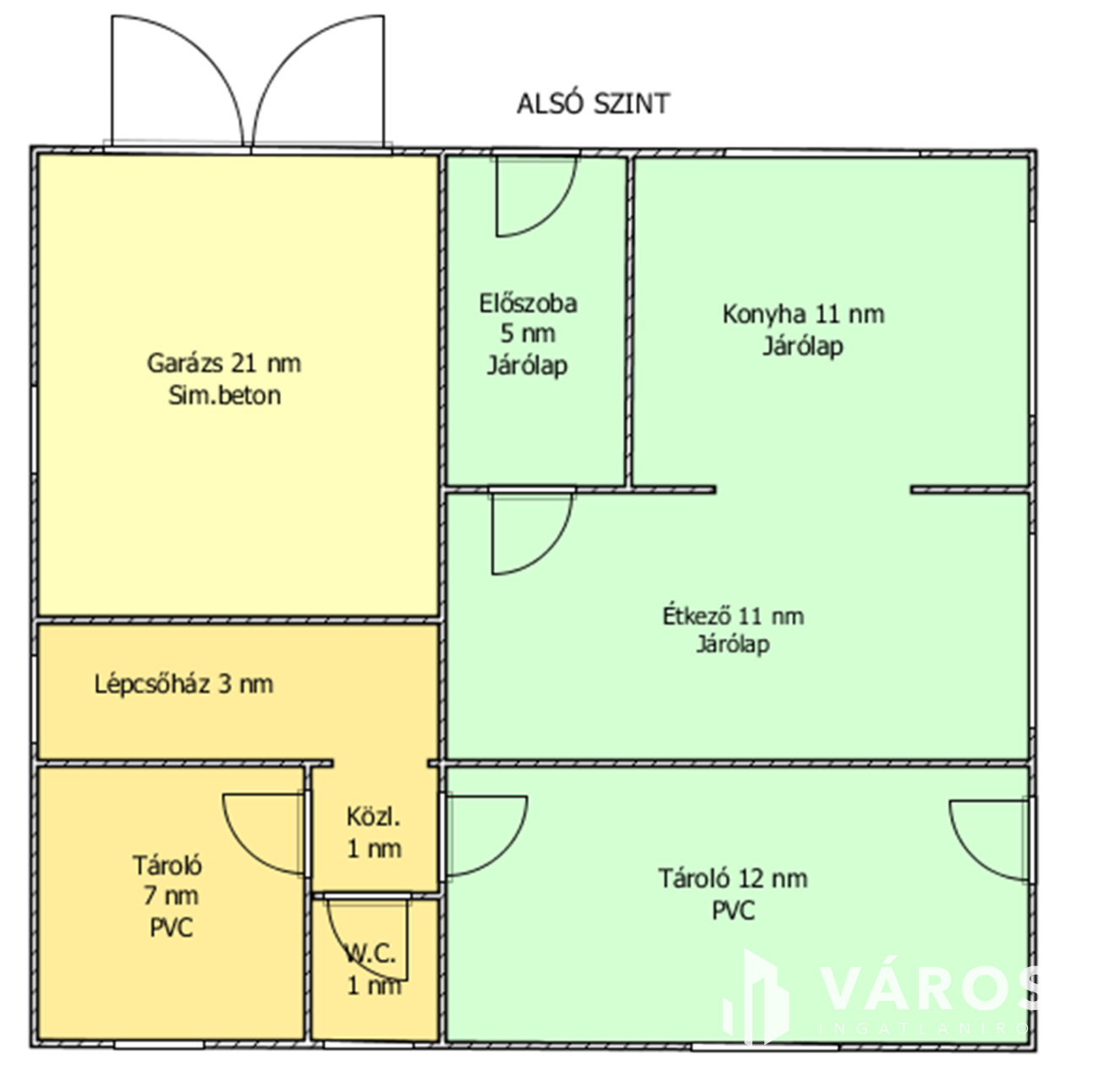 Az ingatlanban az alsó szinten előszoba, konyha, étkező, közlekedő, W.C., 2 tároló, garázs, a felső szinten 3 külön nyíló szoba (2 erkélyes), fürdőszoba, közlekedő, gardrób található. Igény szerint, a tetőtér beépítésével tovább növelhető a hasznos élettér.