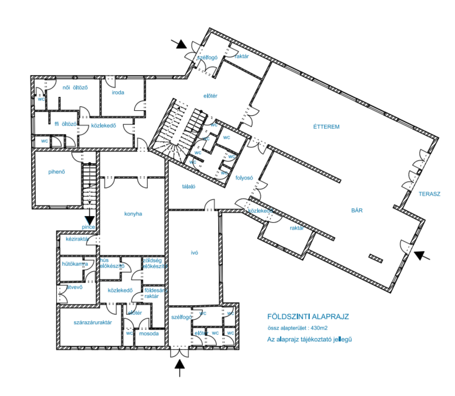 Az üzleti célú ingatlan, eredetileg étterem és panzióként üzemelt, de az adottságai alapján más tevékenységre is alkalmas lehet, idősek otthona, üzemi konyha, munkásszálló, rendezvényház, élelmiszer iparágban dolgozó vállalkozások, cukrászat, húsfeldolgozó, cég, üzem céges telephely, vendégház, vadászház, hotel, motel