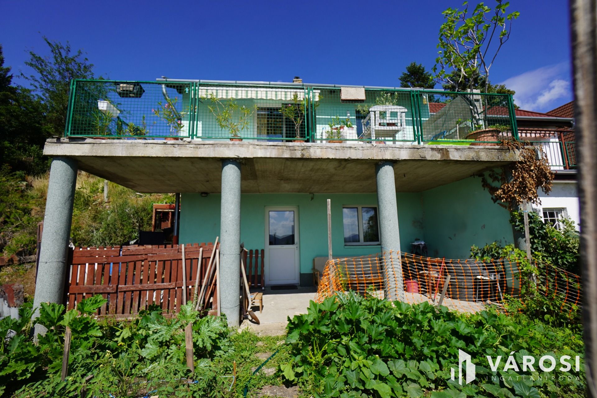 Hegyoldalon helyezkedik el így lépcsőn keresztül jutunk el a a kétlakásos családi házba így a panorámás kilátás biztosított!