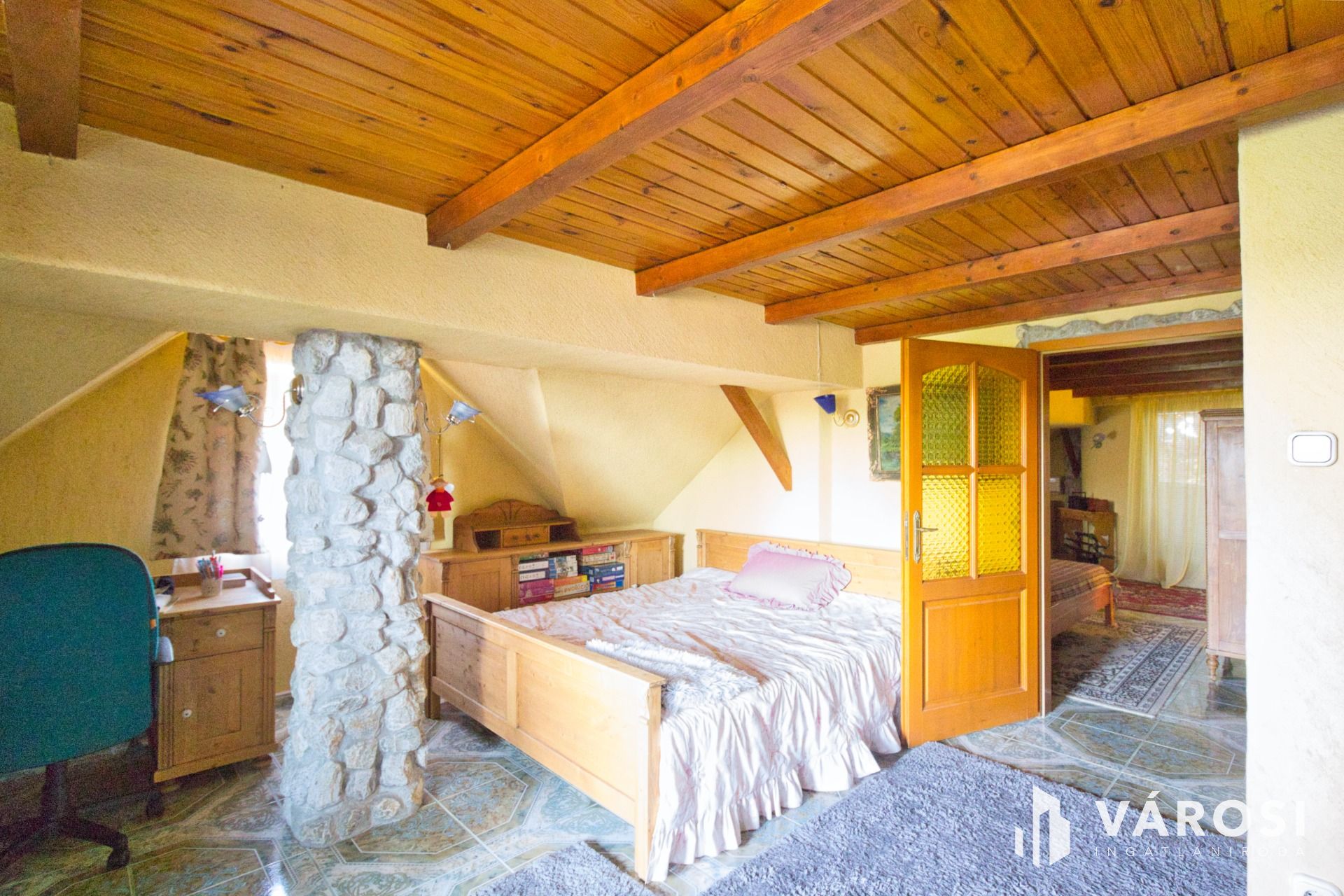 EMELET: 2 szoba, 2 gardrób szoba, nagy 10 m2-es fürdő + WC, 2 erkély.